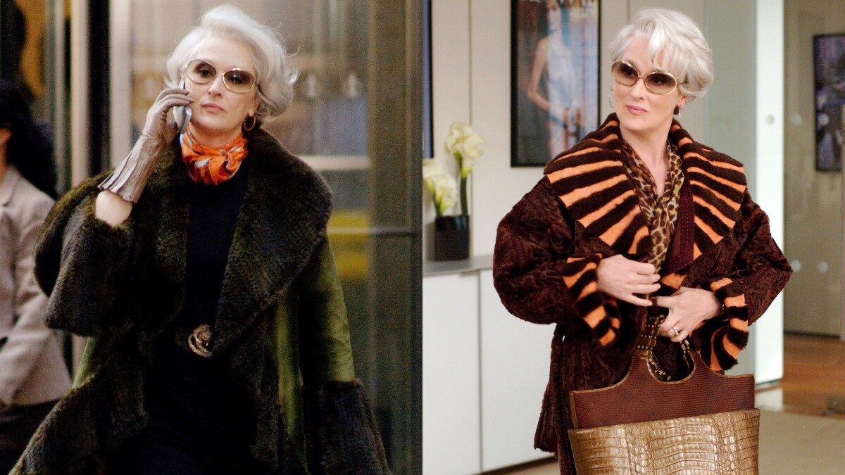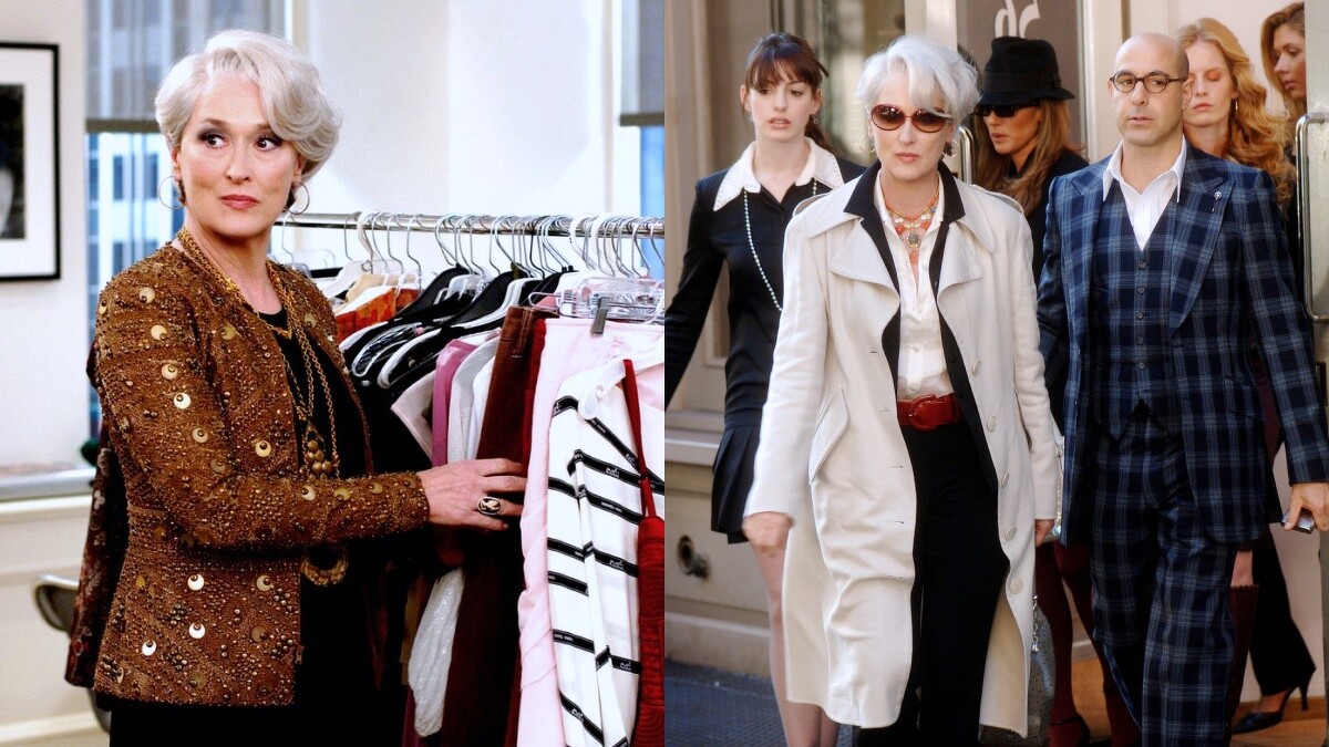 為了完美詮釋Miranda Priestly那高冷的角色個性,造型前,Patricia Field秉持著「在角色與演員之間找到一條平行線」的理念,早已先與Meryl Streep討論她眼中的時尚總編是什麼樣子,進而將角色設定為高尚優雅的形象,並果斷地將Donna Karen於80至90年代推出的一系列的大氣優雅服裝作為參考。