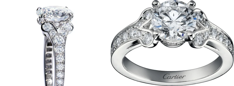 創立於1847年的卡地亞,早在1895年就開創性地將輕盈、堅硬的鉑金運用於鑽石鑲嵌中,完美將鑽石璀璨奪目和堅固恒久的特質體現得淋漓盡致,最終鑄成了傳世經典,定義了訂婚戒指的標準。每一枚卡地亞結婚戒指的誕生,從工作坊中的鑽石專家,精心挑選0.18克拉以上鑽石,僅採用淨度介於IF和VS2之間,及顏色D與H等級間的美鑽,同時透過細膩的切割、鑲工與獨特創意,在經典戒臺上賦予作品獨一無二的風采。