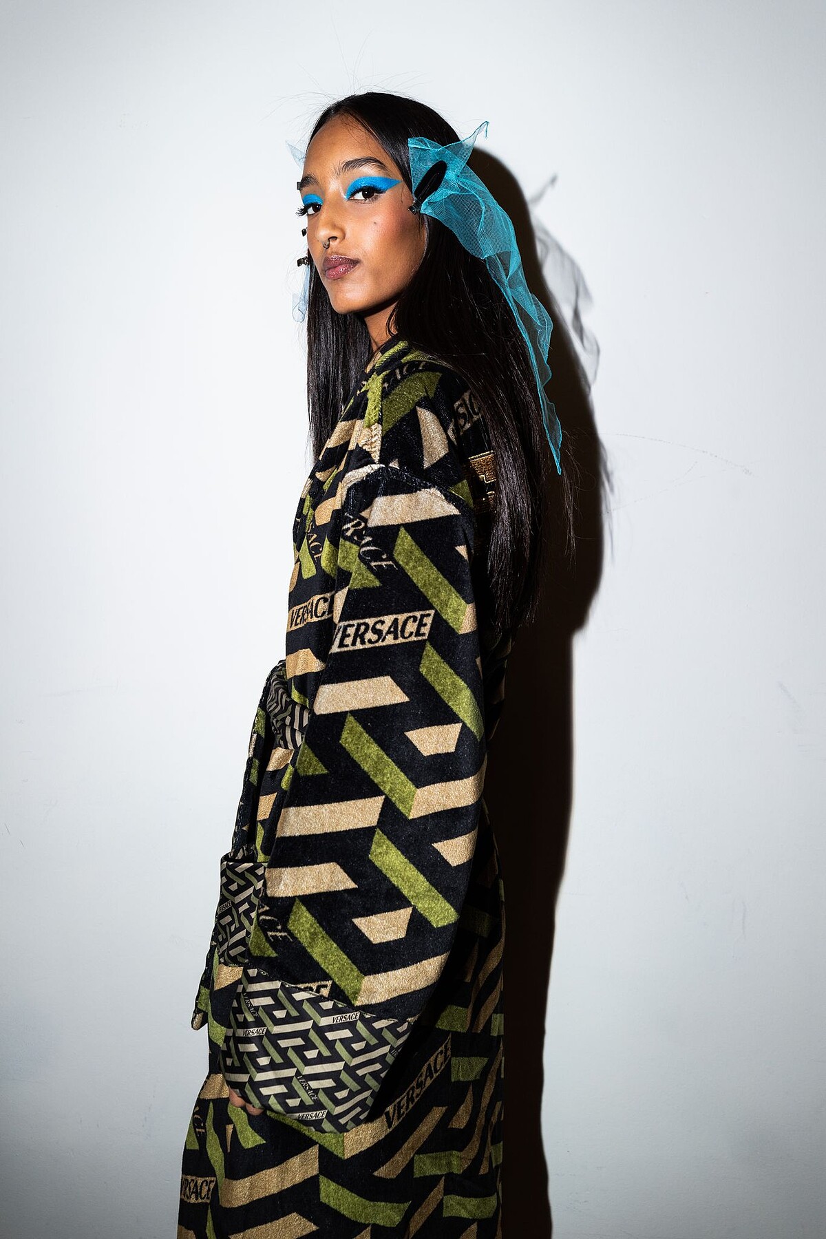在 2021 秋冬時裝展揭幕的全新 Versace La Greca 印花,為居家風格妝點摩登氣息。簡約奪目的希臘迴紋圖案點綴多款家品,包括柔軟的浴袍、舒適的拖鞋、絲質眼罩和優雅的家居擺設。