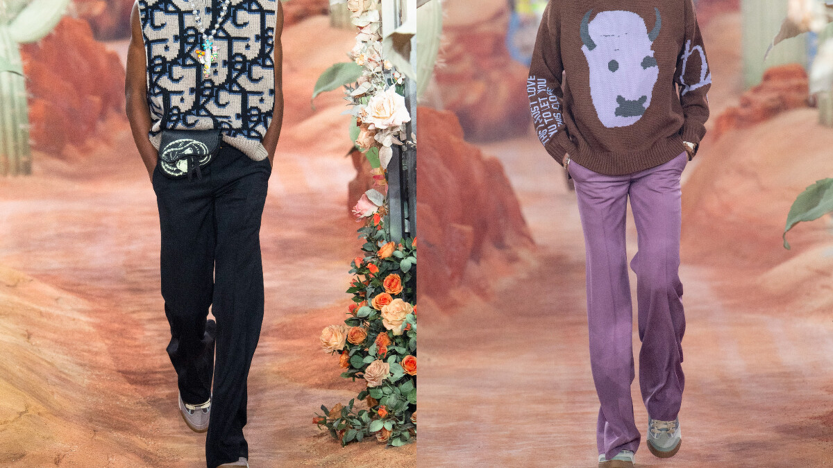 在 1947 年,迪奧先生首次來到美國的時裝舞台:德克薩斯州,這是一個有著磅礡氣勢的沙漠峽谷,Kim Jones 也以此作為品牌與美國的初次連結,找來同樣出生於德州的 Travis Scott 合作。事實上在 Kim Jones 的系列作品中,可以看見不少致敬 Christian Dior 的部分。其中,本次大秀的秀場形象則以迪奧先生童年時期的玫瑰花園為主題,藉由 Travis Scott 的成長,轉化為怪奇物語般的仙人掌奇幻花園。