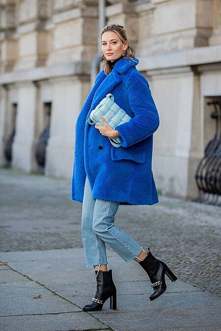 「人間玫瑰」穿搭技巧3:藍色小包聚焦重點