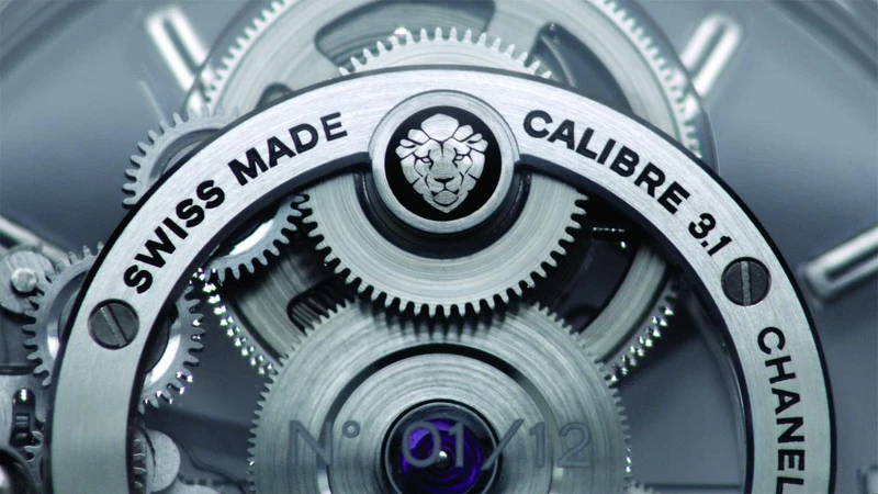 2021年新款 Monsieur 腕錶延用 Chanel 在2016年推出品牌的首枚自製機芯 Caliber 1(隔年立即推出以山茶花鏤空線條成形的第二枚自製機芯 Caliber 2 )。機芯發想從風格設計為出發點,在精簡的面盤佈局配置之下,整合了跳時和瞬時飛返分針兩大複雜功能,是別具意義且辨識度極高的一款,機芯還有更多巧思—飾邊曲線概念來自斜紋軟呢外套緄邊滾,以及印上獅子圖騰,此印記就此成為爾後每一枚自製機芯的標誌。