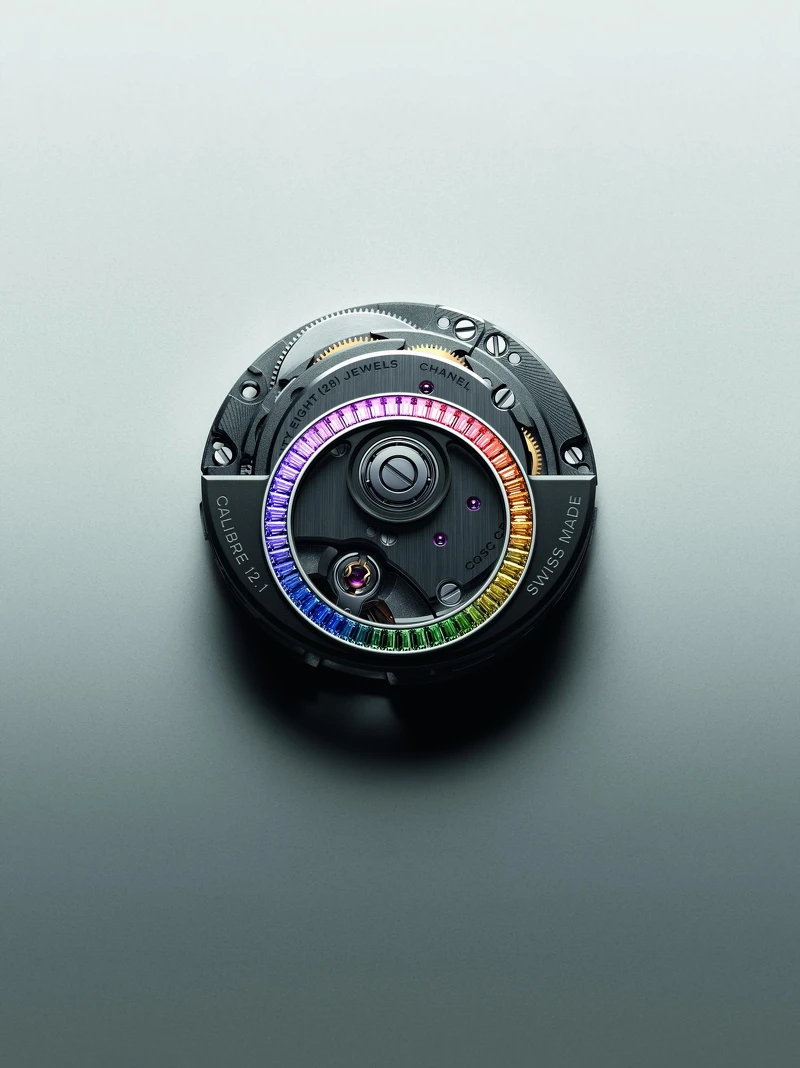 因為錶不只是計時工具或展現個人品味的物件,也是一門集拋光、製模、寶石鑲嵌、微型工程理論於一體的學問。所以 Chanel 的鐘錶路途打從一開始就設定外型設計與精製工藝兼具的座標,先以風格形象拿下門票,再逐步確立高端製錶的能力。Chanel 早先就與以錶殼製作和鑲嵌專業聞名的瑞士製錶大廠 G&F Châtelain 有緊密合作關係,1993年進一步收購錶廠與其集團,同時成立陶瓷工坊,是七年之後J12成功研發的關鍵問路石;2010年開啟與複雜功能專家 Renaud&Papi 合作,推出極具 Chanel 邁向頂級製錶之路的代表性作品—J12神秘逆行功能陀飛輪腕錶;2011年於 G&F Châtelain 內部成立專屬於品牌的機芯開發特別部門,同年再買下 Romain Gauthier 部分股權;2018年成為 F.P.Journe 股東;2019年再度宣布入股 Kenissi 製錶廠。如此連年大動作的背後意義,一方面在以品牌資源挹注獨立製錶廠的順暢運作,同時保存傳統工藝,另一方面也透過強強聯手,加速高端製錶征程;掌握自製機芯門道,為何如此重要?讓造型審美能與製錶工藝接軌,讓風格不再受限於技術,凸顯 Chanel 腕錶的美妙。