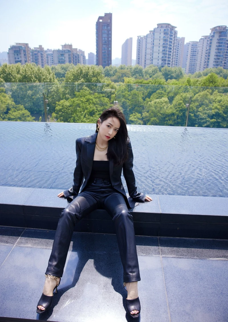 中性風格也是宋茜偏好嘗試的風格之一,擁有逆天長腿的他,穿上全黑皮革長褲搭配同樣為皮革的 SAE 金屬鏈飾跟鞋, 以黃銅製成鏈環,冷酷又帥氣,時髦女力,不言而喻。