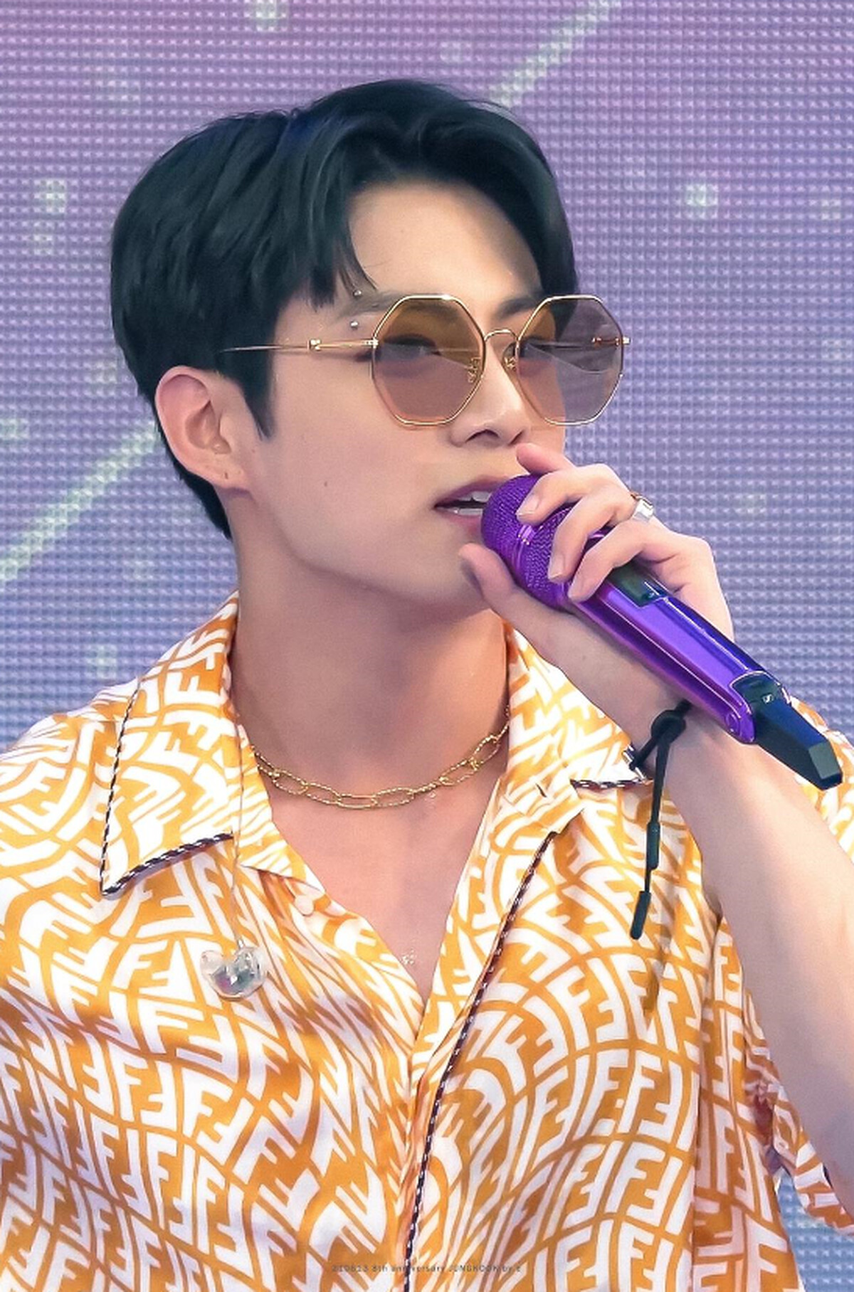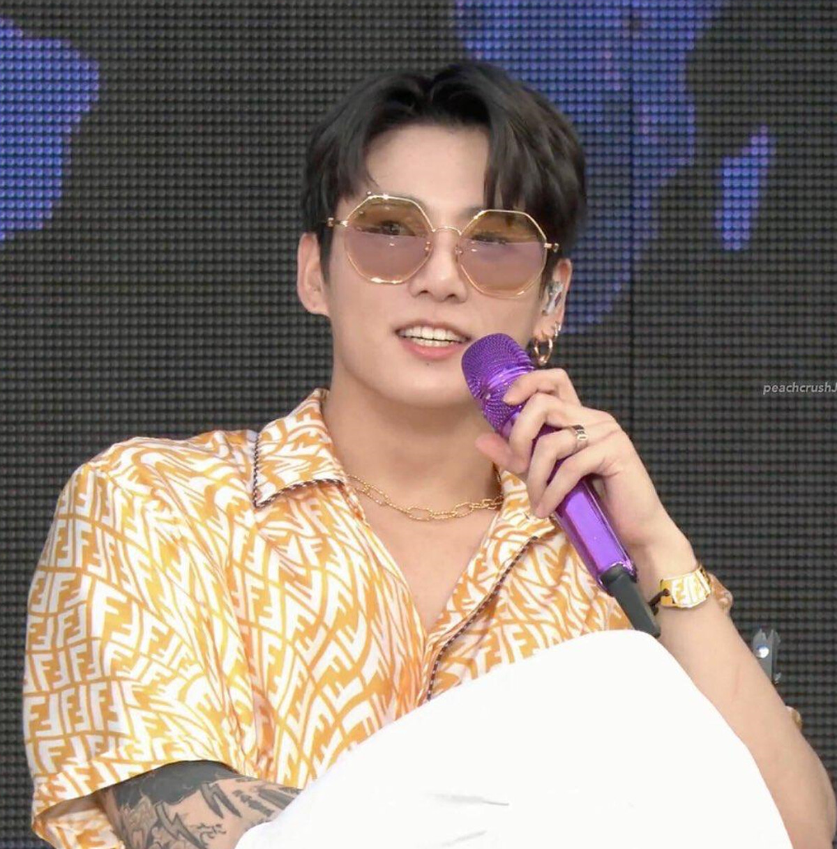 而此場直播中,擔任主唱與領舞的團員田柾國身穿 FENDI 與紐約藝術家 Sar