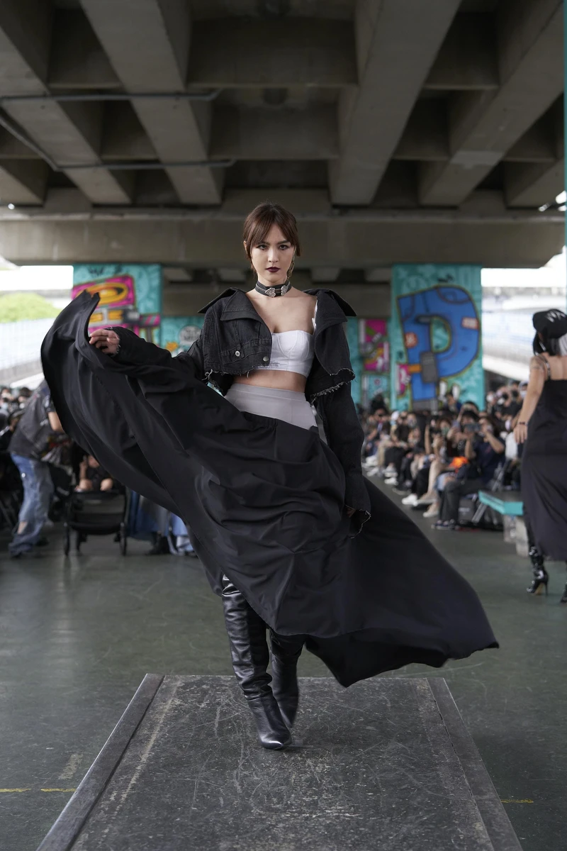 面料上,JENN LEE 22 春夏系列以親膚彈性面料為主要運用,讓穿著者備感舒適,印花則是與視覺藝術家JUN YAO ZOIE LIAO合作,以童趣為主要靈感打造。尖型袖型、下擺尖形收尾、女性自然曲線…等服裝輪廓讓女性能更自然的表達自己,展現屬於自己的女力特質,當然,如:二手衣再製、回收寶特瓶紗線布料等運用,也讓永續不再只是口號,徹底實行其精神。