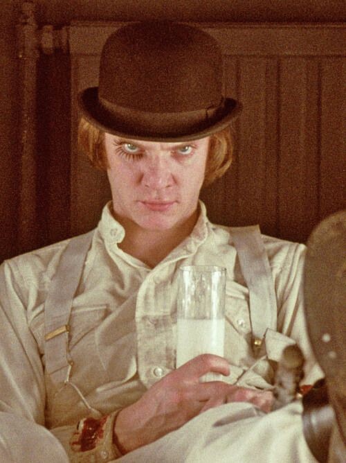 這部在七○年代被列為禁片的經典之作,由美國導演 Stanley Kubrick 所導,妳就算沒看過他的作品,應該也聽過《鬼店》這部影史經典。而《發條橘子》則講述未來視角的英國,一名總是愛著高禮帽哼唱《雨中歡唱》(Singing in the Rain)的混混所發生的故事,劇情獵奇且具張力。