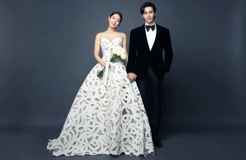 隨著婚禮一同曝光的婚紗照,吳姍儒接連換穿3套婚紗,包括長拖擺白紗、幾何亮片黑色禮服和浮誇細摺粉色蓬裙,全是來自歐美名人紅毯御用的Nicole+Felicia的婚紗。