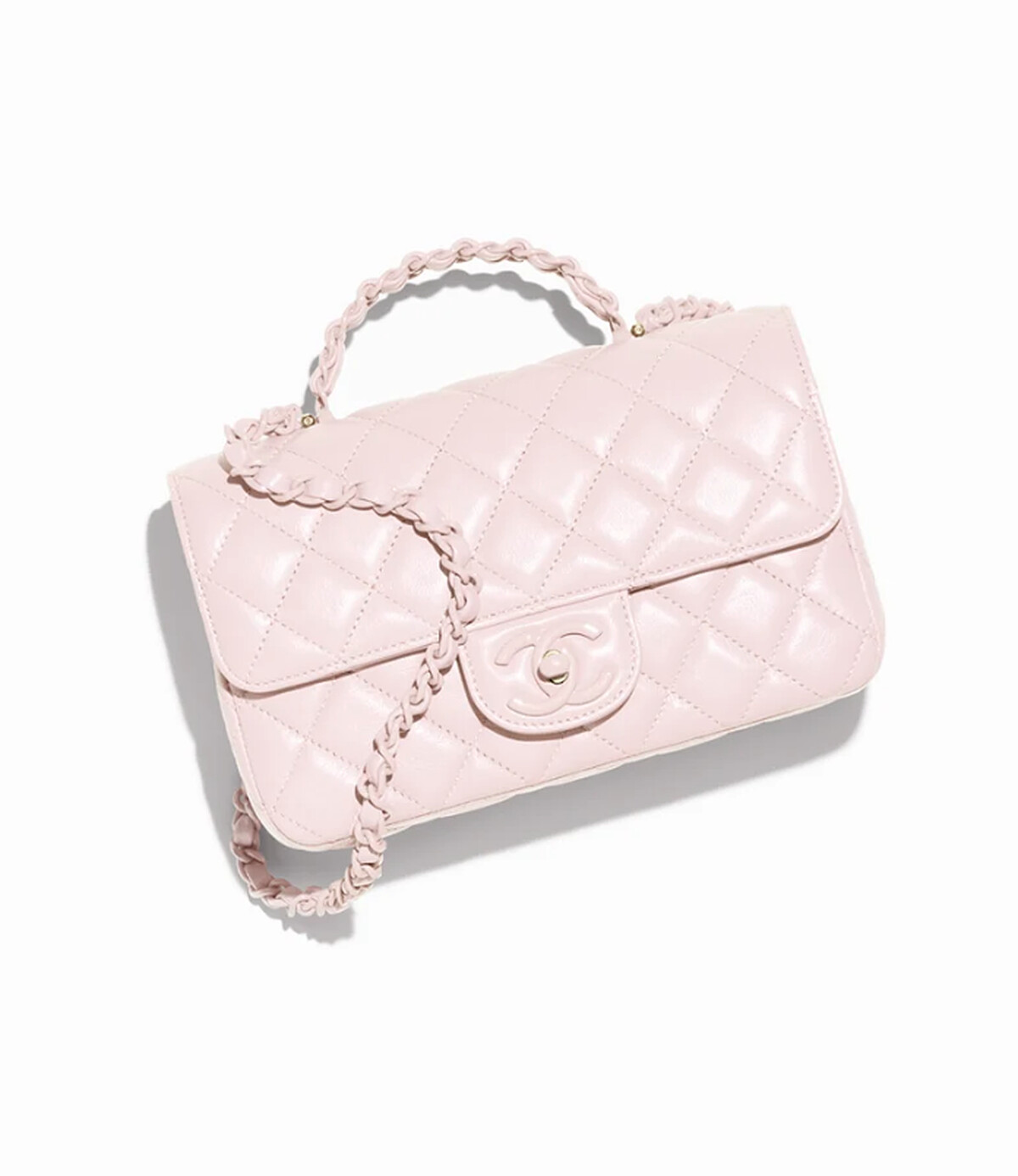 Chanel 2024/25 Cruise推出迷你手把口蓋包,這款以小羊皮及漆皮金屬所製而成,芭比配色的淺粉紅顏色,可愛討喜,也是非常適合假期及派對的選擇。