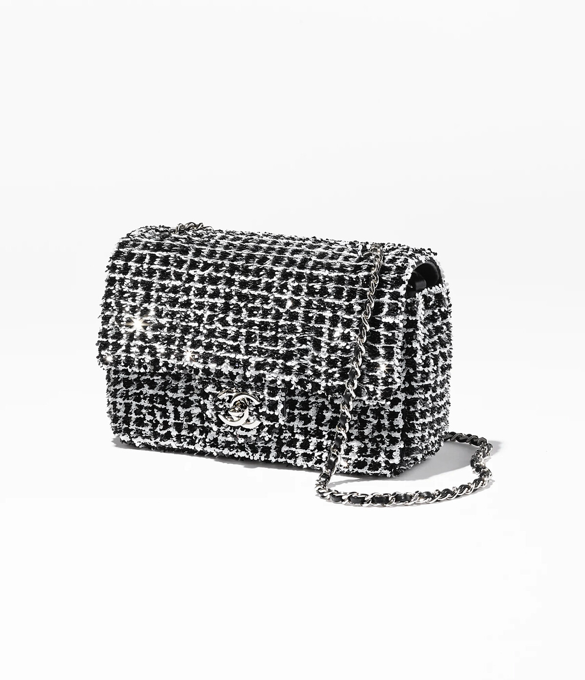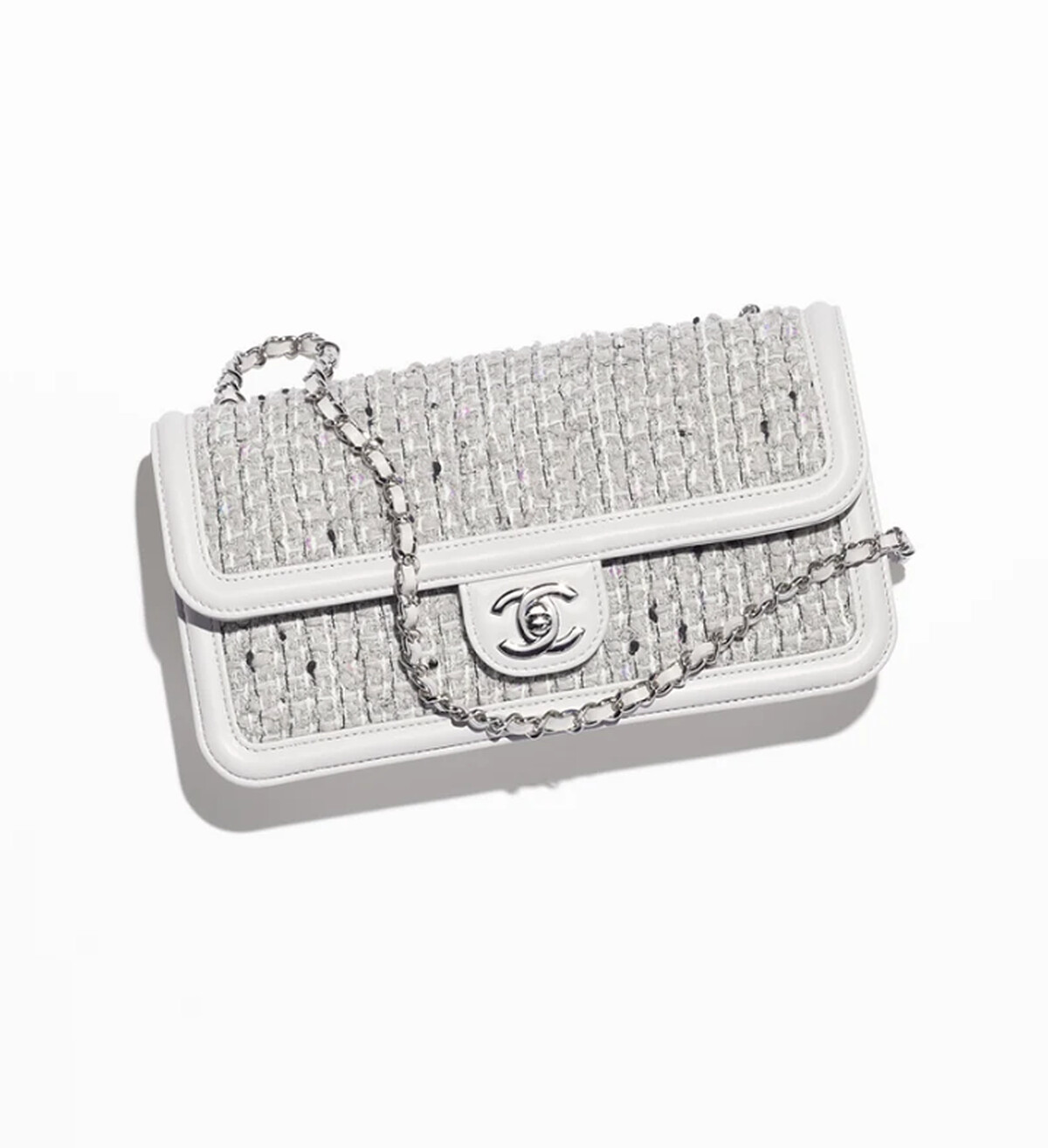 這顆以淺灰、白&黑的斜紋軟呢、小羊皮與銀色金屬製成的小型口蓋包,精緻的細節與經典的軟呢,是不是讓人不得不愛,不得不收藏。