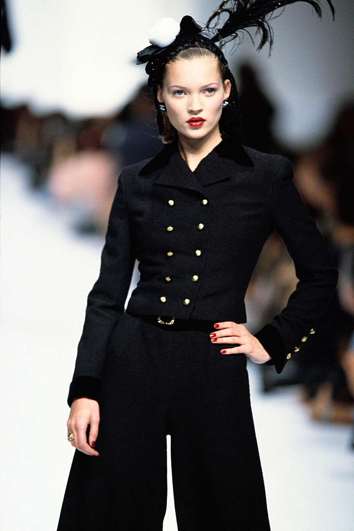首先看到的即是超模凱特摩絲,她可說是引領「病態美」流行於時尚圈的先驅。凱特摩絲在當年擁有的並不是所謂的美人臉,反而是以滿臉雀斑、高顴骨、櫻桃唇等極具辨識度的五官,讓大眾印象深刻。此外,身高僅168公分的她,也靠著獨特的風格於1990年代走出專屬於凱特的輝煌時刻。