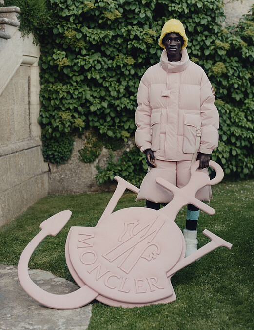Jonathan Anderson:就拿粉色羽絨外套與短褲來說,服裝內外面料及內襯皆由 百分之百再生尼龍製作,完美呼應Moncler為保護地球與永續發展的環保精神。