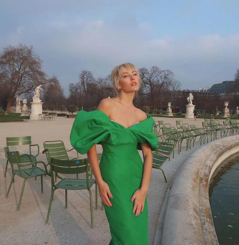 像是大S身上這件裸粉色平口禮服,裸粉色襯托出女性的甜美、平口剪裁呈現性感女人味、胸前抓皺設計則為整件禮服增添設計感。喜愛Rachel Gilbert的名人榜除了大S之外,還有以亮片單肩魚尾裙出席2011年凱特王妃和威廉王子婚禮前晚宴的碧翠絲公主、穿著白色繞頸水鑽小洋裝出席2009年電影《回到17歲》首映會的泰勒絲。