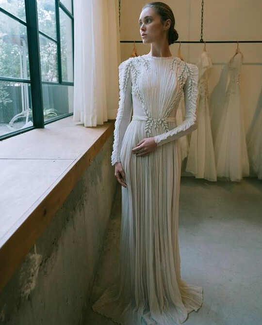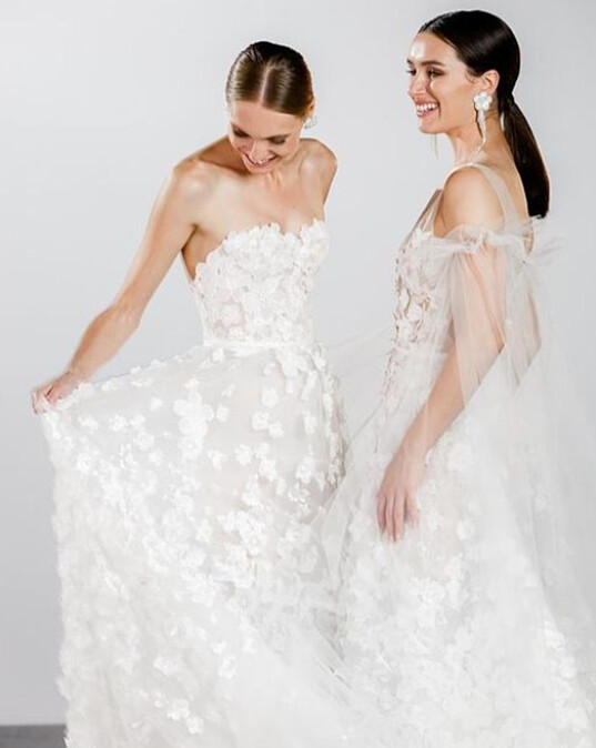 去年美國名媛芭黎絲希爾頓(Paris Hilton)與企業家男友的婚禮,她以一襲夢幻純白婚紗亮眼出場,由Galia Lahav於1984年創立的同名婚紗品牌,以文藝復興般的浪漫風格著稱,Galia Lahav擅長以蕾絲與薄紗等唯美面料,呈現大膽的低背、性感的深V或浪漫的魚尾設計,創造出性感又不失優雅的婚紗風格。