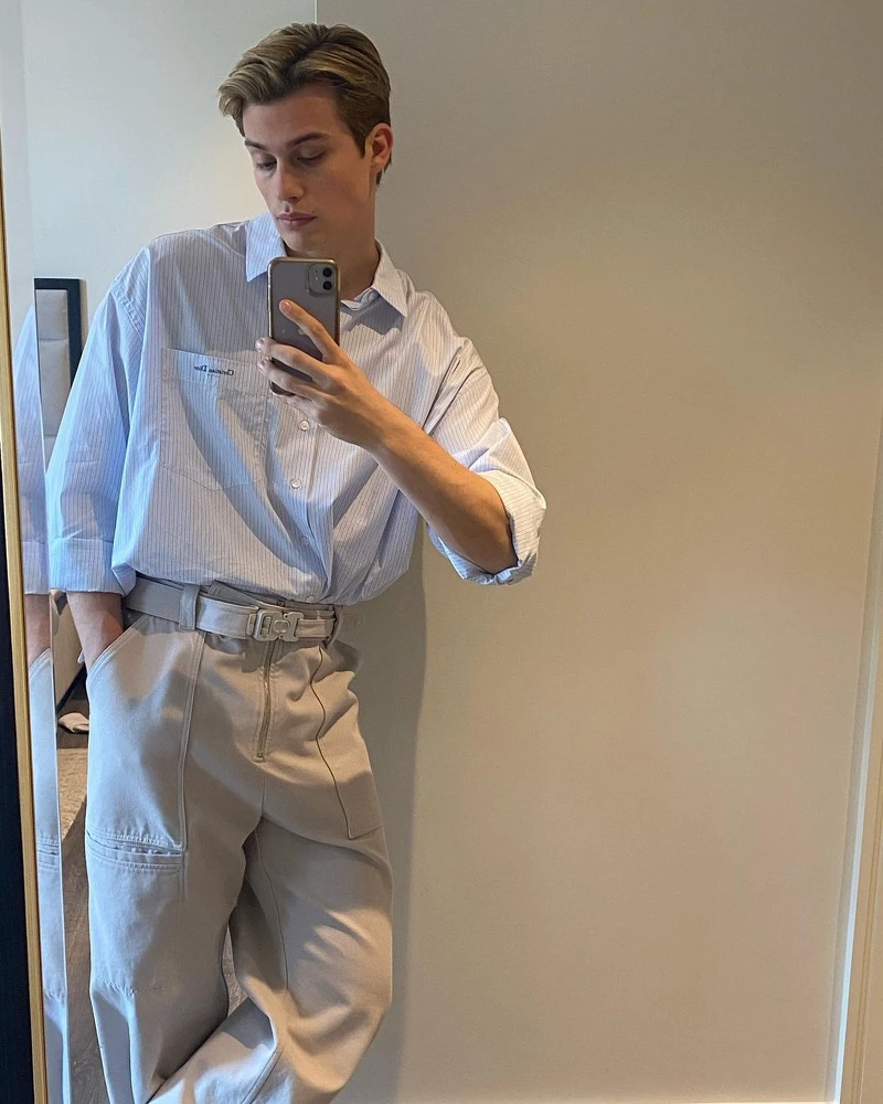 先是登上時尚雜誌封面,接著Dior、Boss、Prada...品牌找上門,邀請Nicholas Galitzine出席發表會、大秀,Galitzine以一身清爽細直條紋襯衫、卡其褲出席Dior活動,就連Dior Beauty也曾邀請他參加Miss Dior香水的發表會。