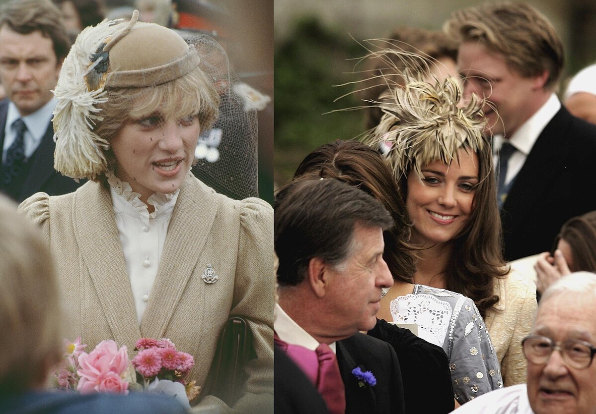 除了服裝,凱特王妃也注意到黛安娜王妃的配件細節,同樣的米色和羽毛元素,兩人分別詮釋出不一樣的個性。