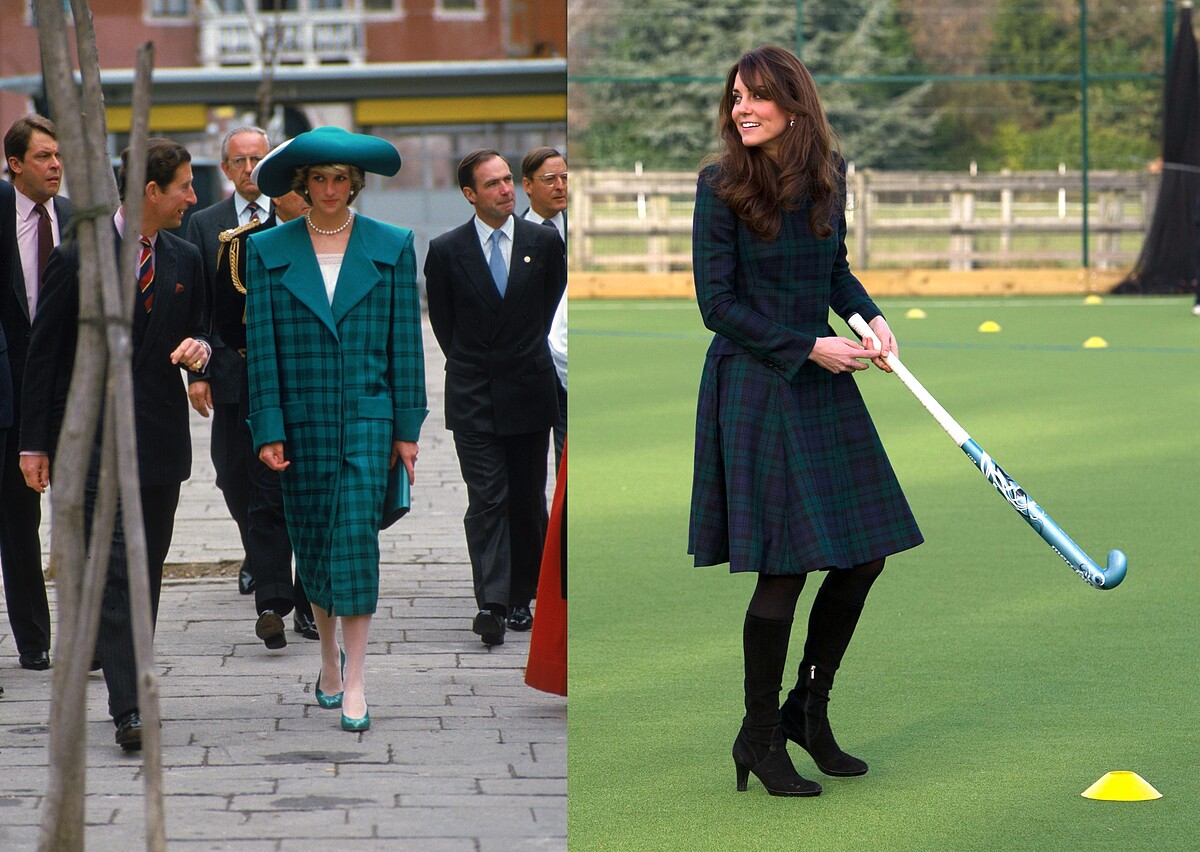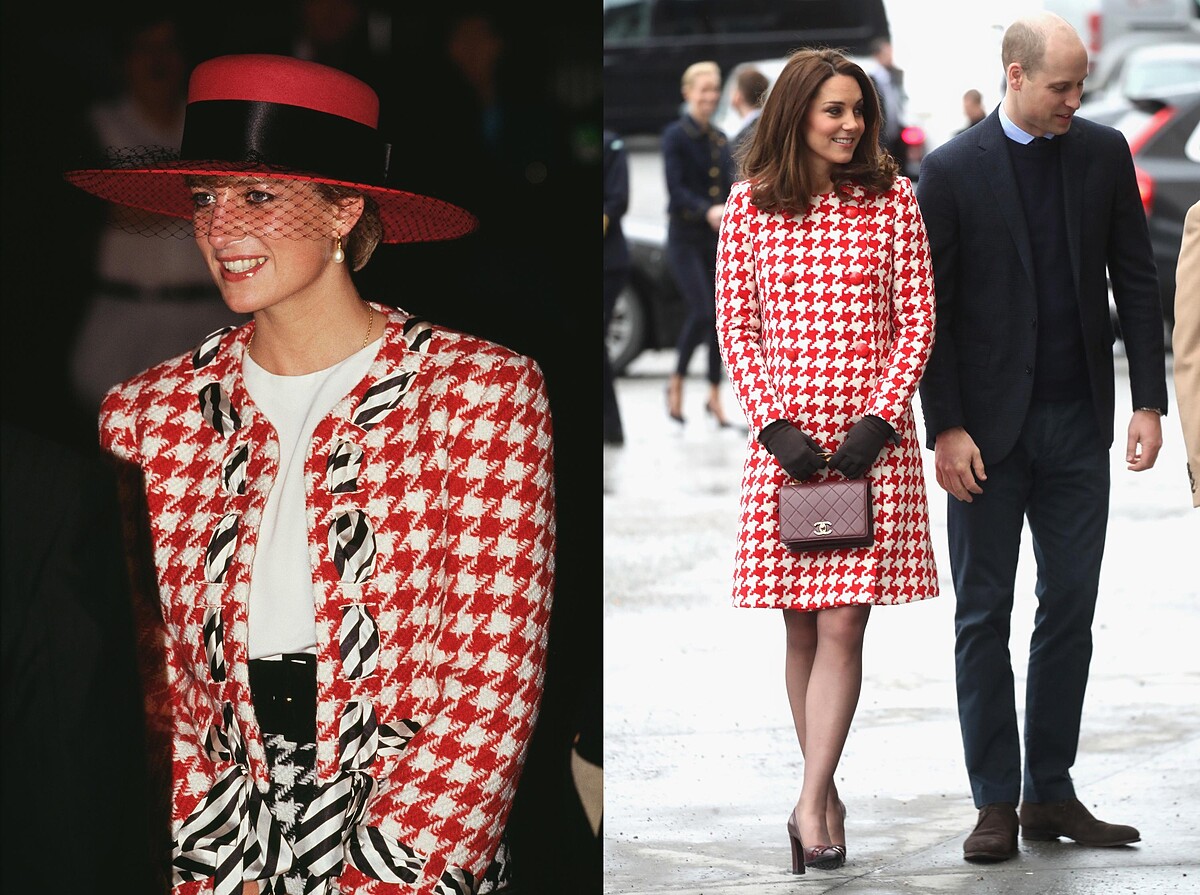 皇室在外交參訪時,有時會參考對方國家的國旗來選擇合宜的服裝。1991年,黛安娜以紅黑配色的千鳥格紋到訪瑞士;凱特則是全紅的千鳥格紋去到加拿大。