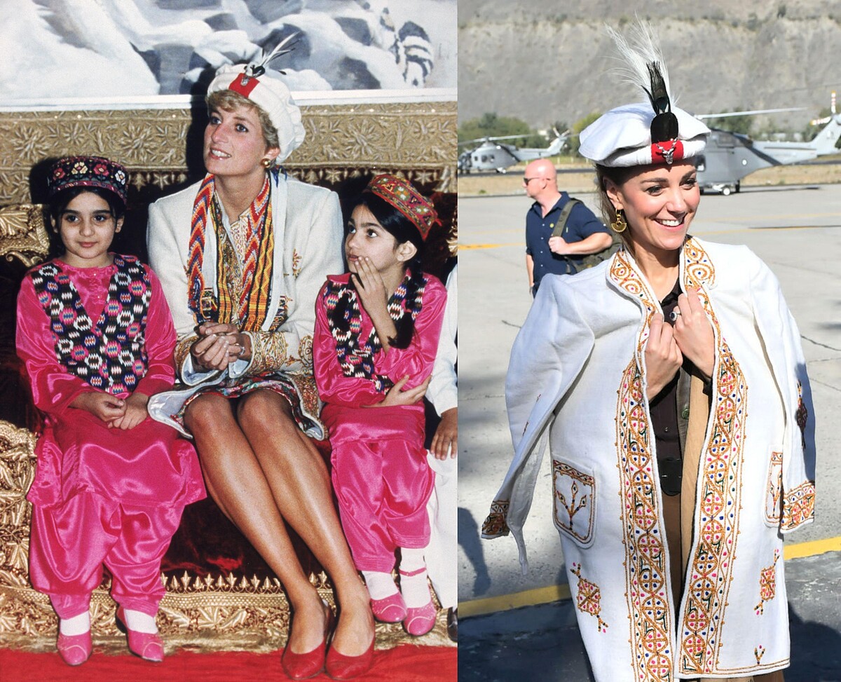 黛安娜王妃與凱特王妃先後都曾到巴基斯坦的契特拉參訪,套上當地的傳統服飾以表入境隨俗的敬意。