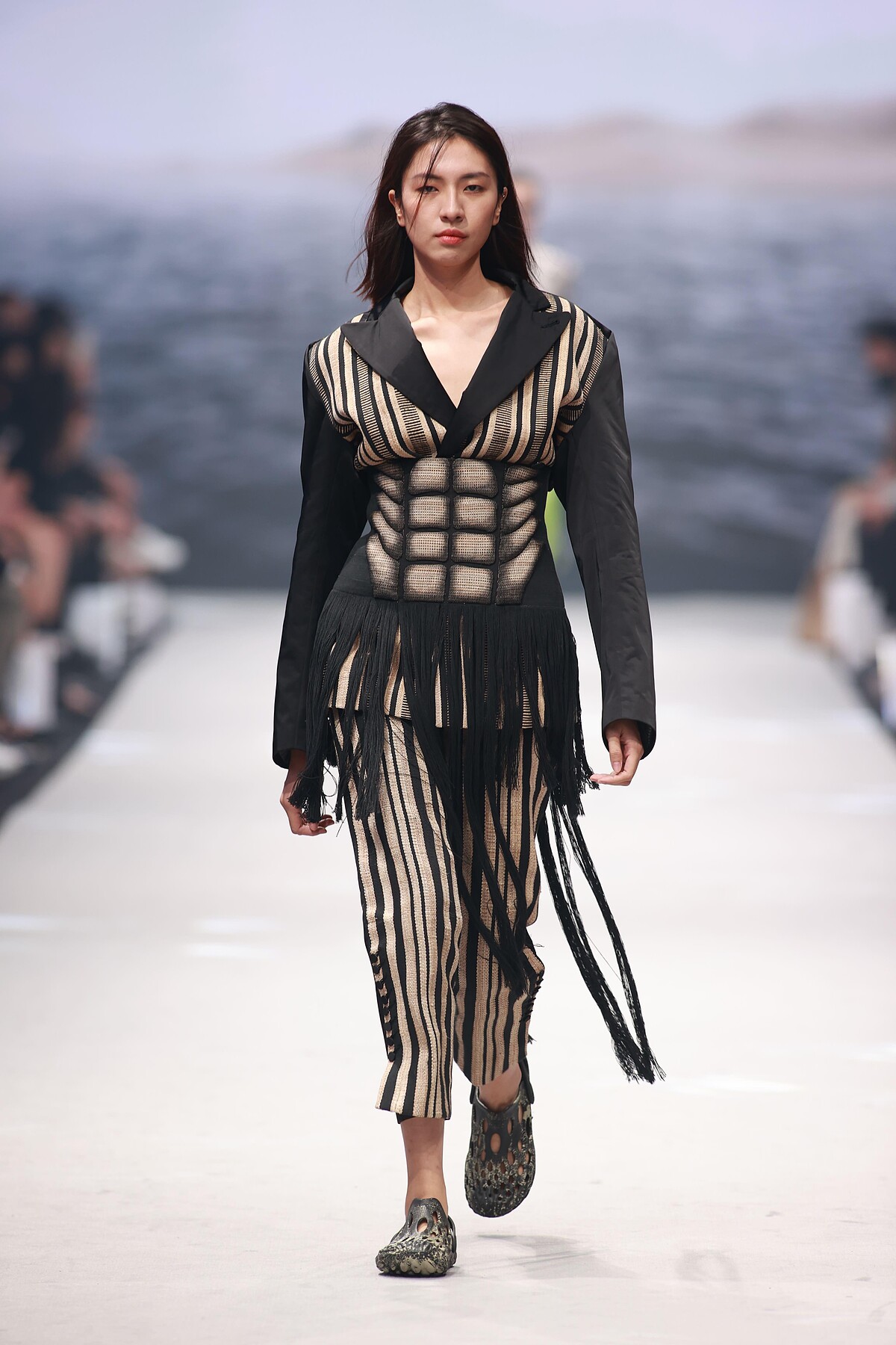 SHAO YEN品牌設計師陳劭彥著重呈現噶瑪蘭族香蕉絲織品的特殊質感,這種需經精細處理的布料,過去只有族中貴族才能穿著,這樣的技藝透過時尚線條的呈現,更能呈現精品級的質感。DYC TEAM設計師趙之逸則運用賽德克族繁複的織紋混搭丹寧,為傳統找出新一代的新視感,也是當晚令人印象深刻的作品之一。
