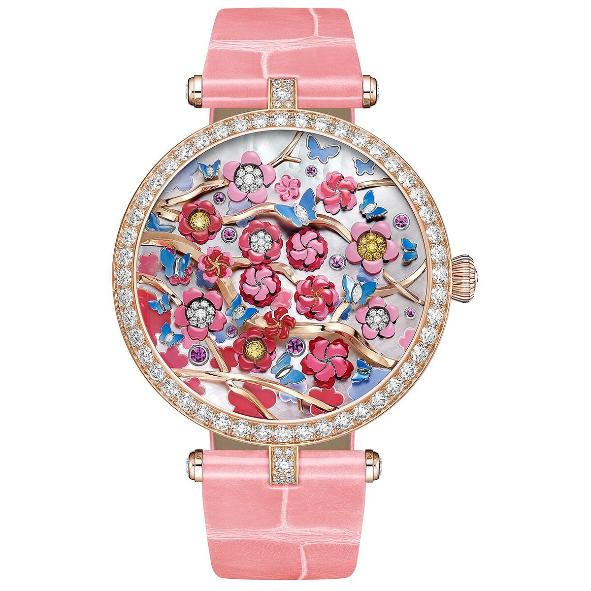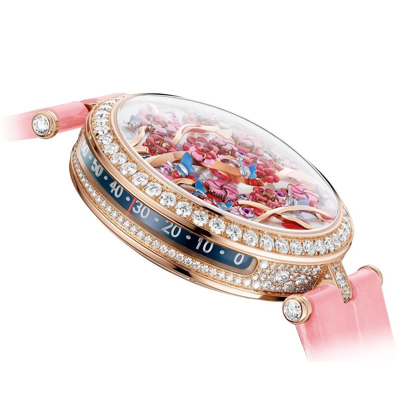 在 Van Cleef & Arpels 的製錶工坊裡,技術與理論是為了故事和設計而存在。獲頒2022年GPHG最佳創新大獎的 Lady Arpels Heures Florales Cerisier 腕錶,就從觀賞朵朵開合的雅興,漫步於花園之中的畫面開始,再透過浪漫奇想和特殊研發的動態機械結構打造,從此以後,現在幾點鐘不靠指針來指示,而是數一數面盤上到底開了幾朵花。