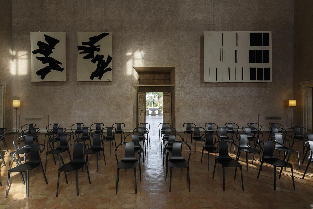 6間沙龍空間最大的Grand Salon,約有150平方米的大小,專門用來舉行各項藝文活動,像是音樂會、表演、會議、裝置藝術展覽等,Fendi加入了由 Ronan 和 Erwan Bouroullec 設計的 Belleville 扶手椅,俐落的現代線條,在消光黑色烤漆的詮釋下,完美與牆上的掛畫相呼應。