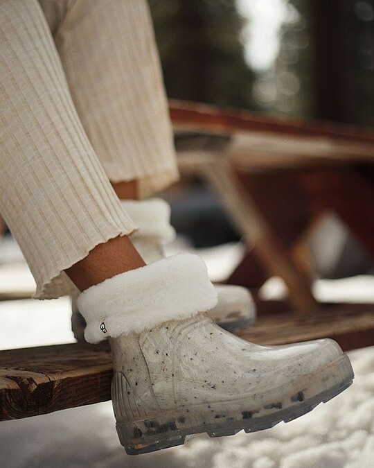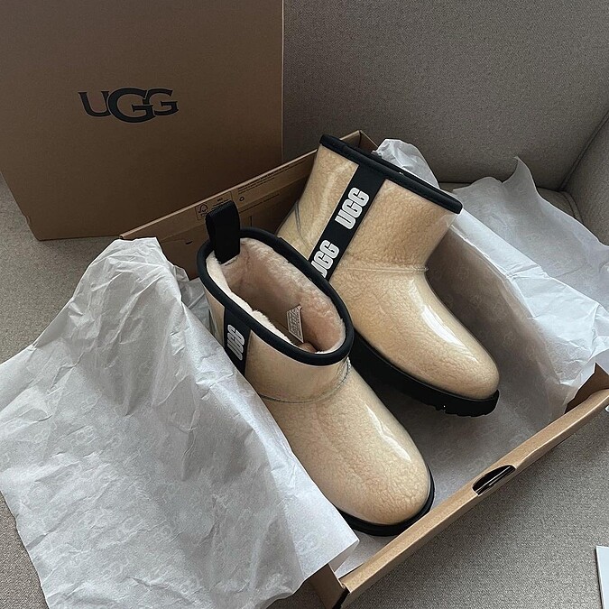 喜歡雪靴的保暖,但是在雨季特長的台灣卻不麼容易穿出門,取經Mini Classic內裡療癒的鋪棉設計,Ugg以半透明像包覆於外,讓內刷的顏色成為整雙靴子的焦點細節,冬日雨天防水、耍萌、保暖一次到位。