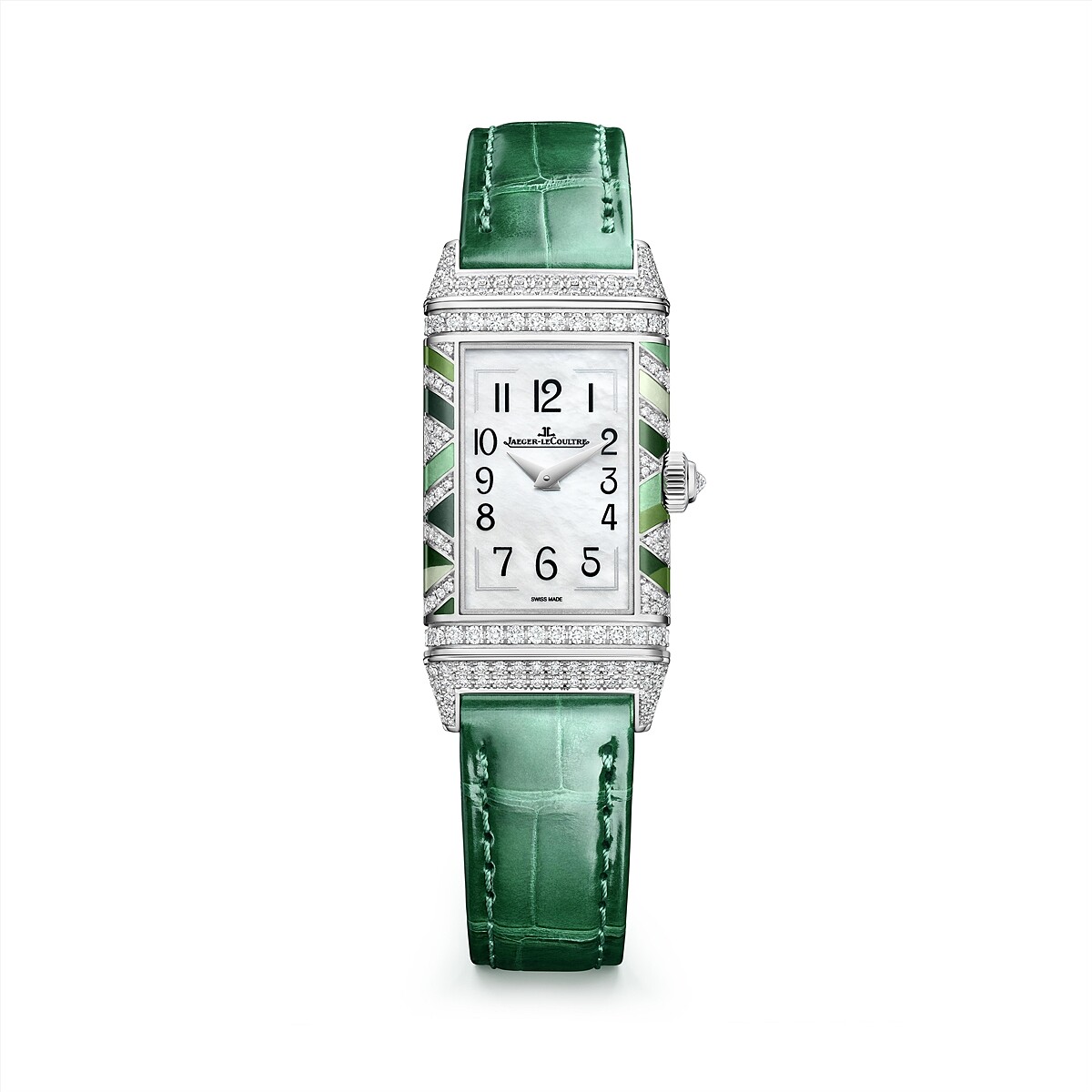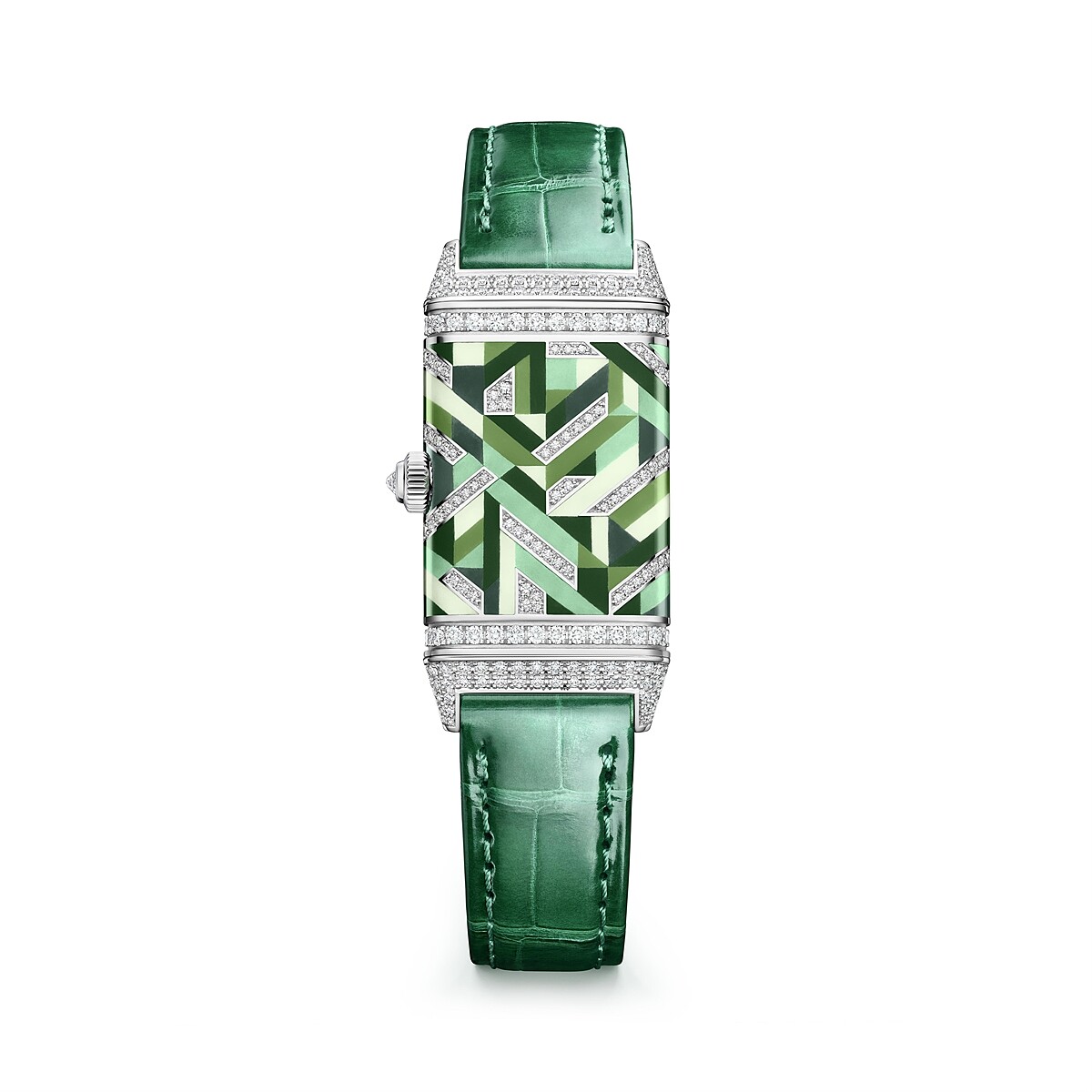 2023年 Jaeger-LeCoultre 專注於可翻轉錶殼系列,其中一款搭載自製手上鍊機芯的 Reverso One Precious Colours 琺瑯工藝錶款相當吸睛,作品以 Reverso 誕生1931年之際時興的裝飾藝術風格 Art Deco 為美學設計定下風格,用不同大小的幾何長方形之微繪大明火琺瑯色塊堆疊,輔加精巧鑽石點綴,令表面更顯質感與層次變化。
