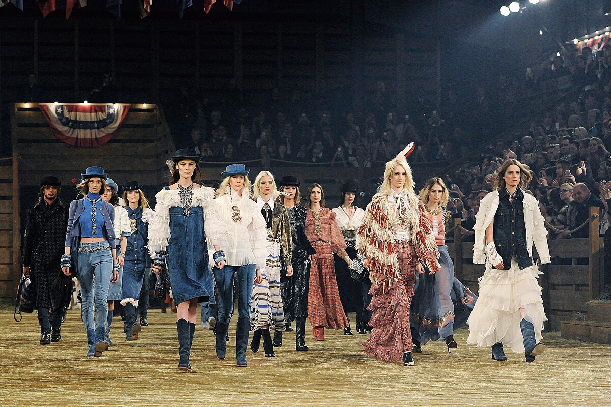 位於美國達拉斯(Dallas)市中心的費爾公園(Fair Park),是一座以裝飾藝術風格建築馳名的國家歷史公園,也是1936年德州百年紀念博覽會的場地,時裝秀場景設計宛如西部牛仔裝置的表演,是 Karl Lagerfeld 對於西部拓荒者浪漫的想像。