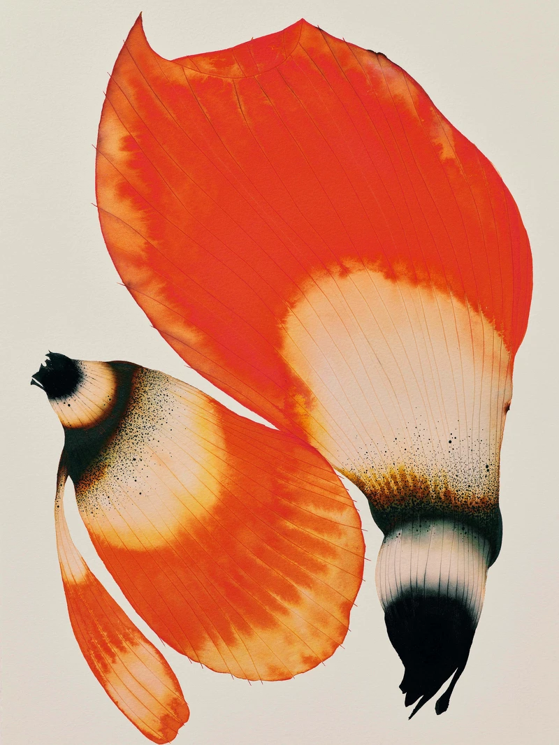 MC:Your artwork is filled with the dynamic beauty of flowers. When it came to translating such artistic features into fashion, did the design or creative process differ from your previous works?