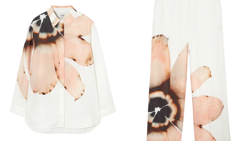 材質上,藝術家 Doherty 選用絲綢和亞麻材質,彷彿一張畫布般,重新演繹他的藝術創作,優雅的花卉圖案融入 COS 服裝中,改變後的剪裁,展現輕鬆優雅的現代造型,無論正式或休閒場合都能恣意搭配出屬於自己的風格面貌。