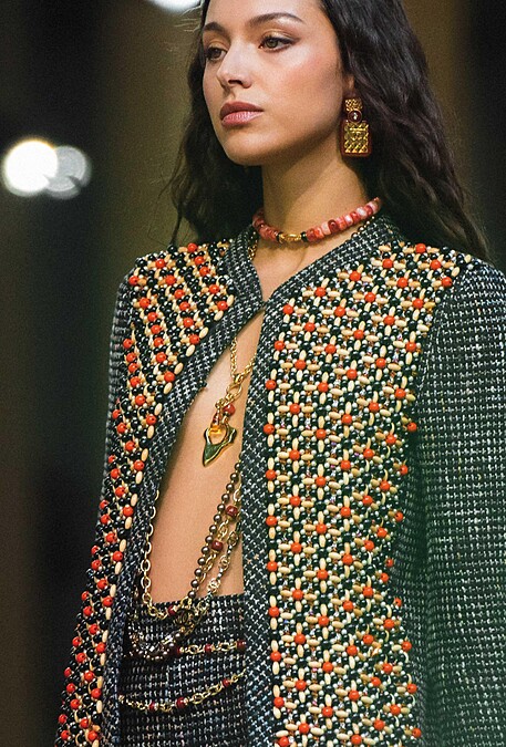 以「對話」為概念,CHANEL 藝術總監維吉妮・維婭 (Virginie Viard)開啟了時尚與藝術的對話 ,也讓法國時尚的深厚歷史及巴黎的優雅精神,與非洲傳統文化、達卡城市氣息有了深度的連結,而「工藝」正是串連起歐洲與非洲、巴黎與達卡的主軸。