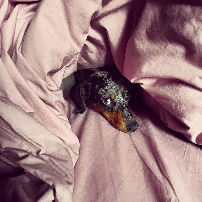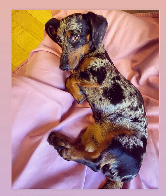 時常出現在Sabato de Sarno版面的還有這隻迷你臘腸犬Pucchiacchella。出生於義大利那不勒斯的Sabato de Sarno,以當地有名的魚料理為自己的愛犬命名,有點無釐頭又有點可愛。