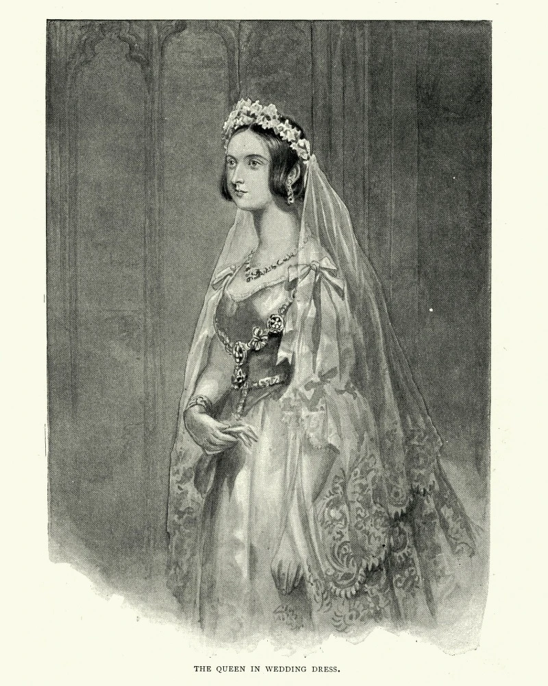 1840年代的維多利亞女王結婚時,身穿一襲浪漫的白色婚紗,在此之前,除了黑色與紅色外的其他色系,都是普遍女性結婚時可以會選擇穿上的色系。維多利亞女王結婚當時之所以會選擇穿上白色的婚紗,除了希望提倡簡約精神之外,更是期待可以以此帶動國內的蕾絲產業,而王室所引領的流行至今不變,在這之後婚紗的設計都以白色系為主,所以維多利亞女王可以說是白色婚紗的最大推手。