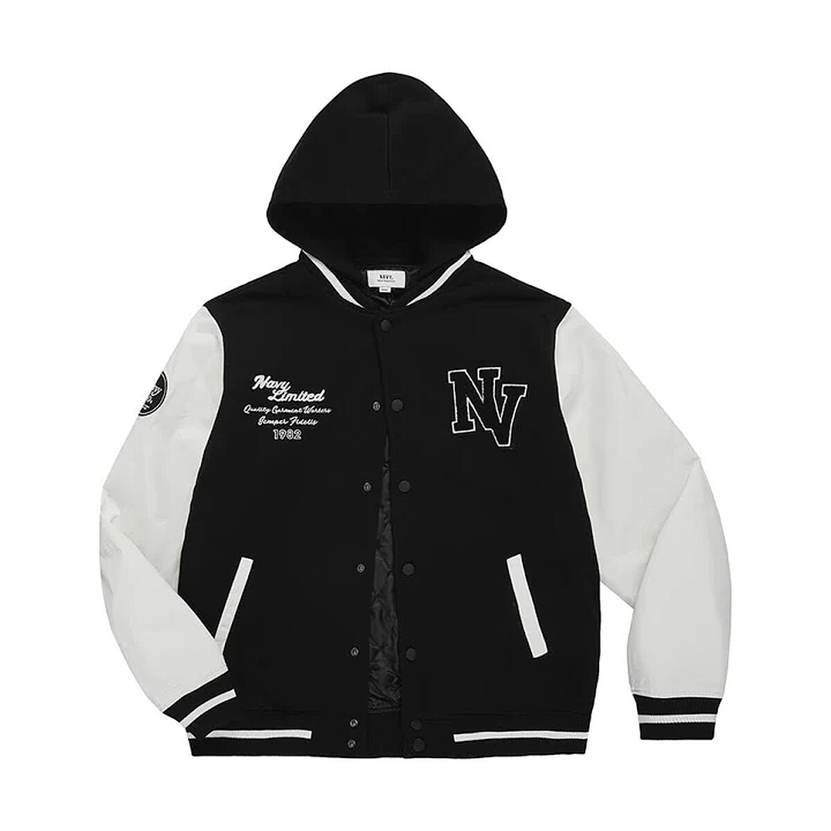 以搶眼撞色設計的棒球外套,強烈的對比感在視覺上更有街頭潮流的風格。