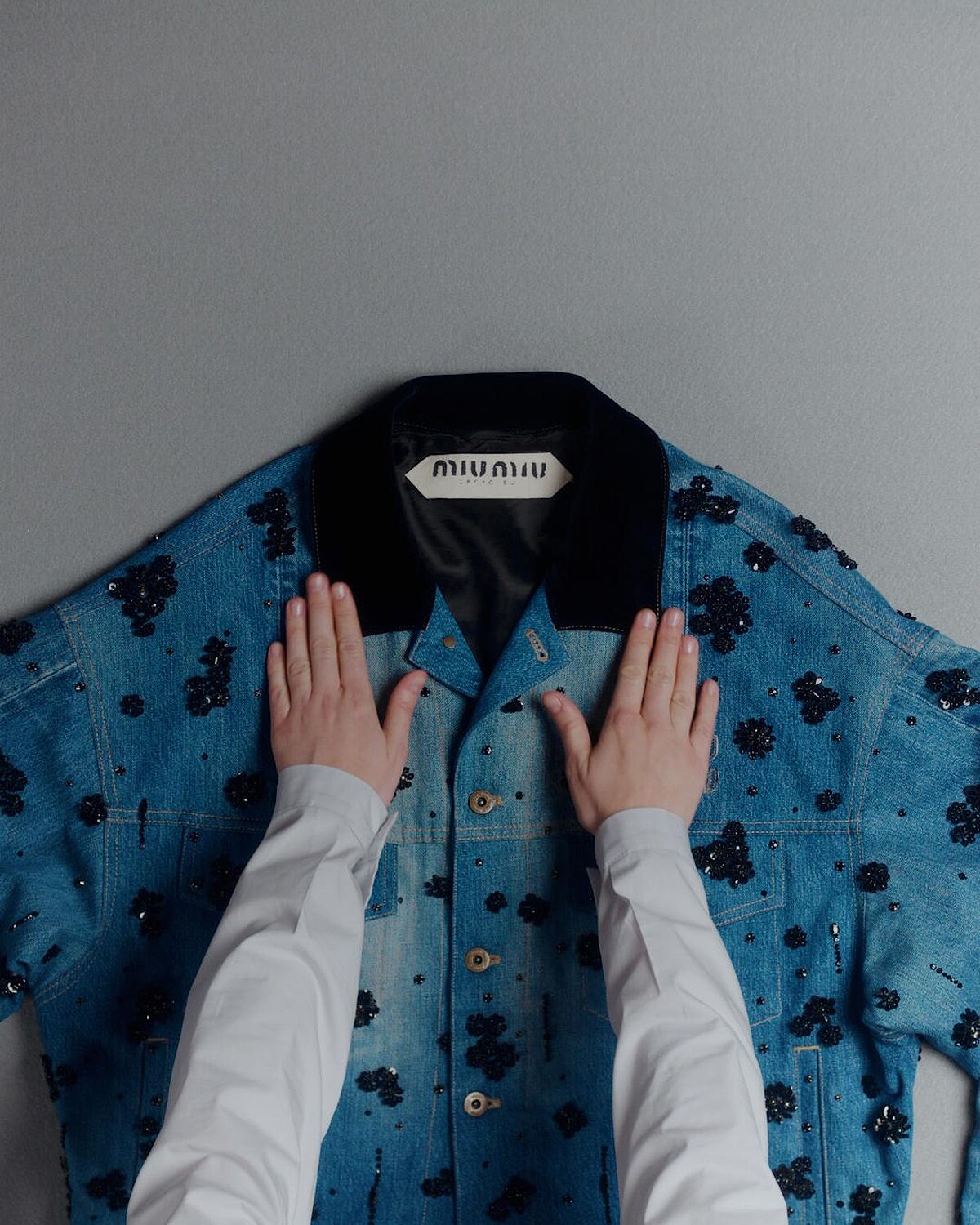 2024年的 Miu Miu Upcycled 丹寧系列透過丹寧專家對布料的挑選,保留了服裝原本的「記憶」,運用「解構」及「重塑」的手法,賦予這些多年前的丹寧新面貌,這個系列重複使用織物並以手工方式製作,時裝精或丹寧狂熱者更可以發現單品保留了那些美麗的外縫線與使用感,那是種對服裝過去的尊重與連結所產生的浪漫。