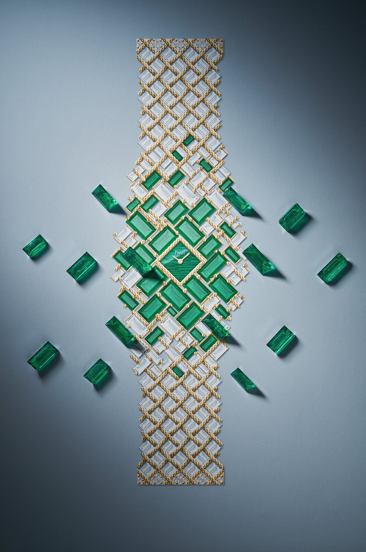 以鐘錶起家的 Piaget 技術深厚,1957年推出厚度僅2毫米的超薄機芯9P,釋放更多實質空間給予設計,助燃 Piaget 的創意花火;1963年,首度將虎眼石、孔雀石、青金石、珊瑚和玉石,各式彩色硬寶石引薦注入錶盤;近代的不對稱腕錶輪廓,和少見的藝術技藝運用,如木材、羽毛細工鑲嵌錶盤,對 Piaget 而言,錶從來不只是閱時工具,珠寶為何不能也是腕錶,此精神於新系列多款珠寶腕錶之上再現。