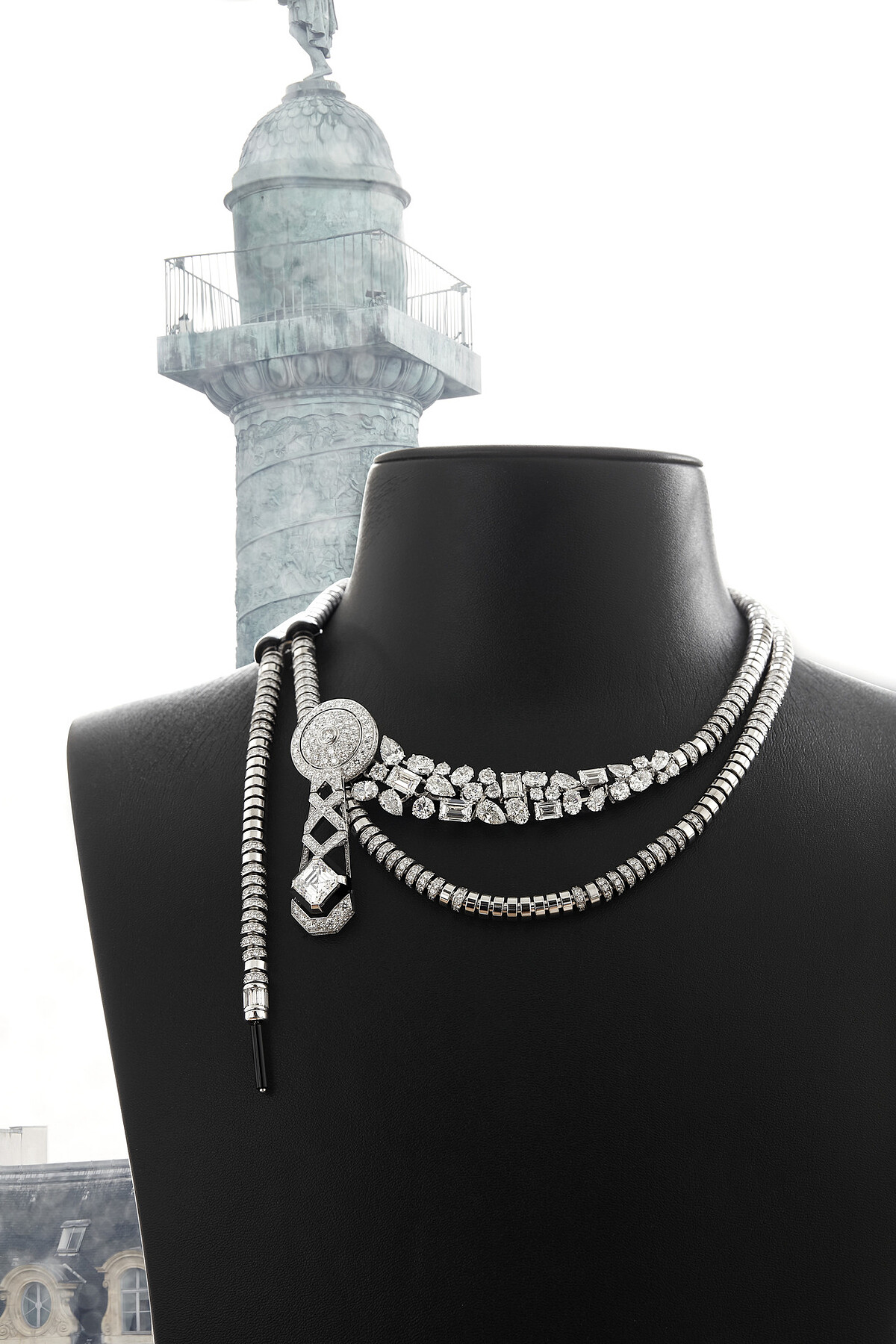 珠寶工坊專為本系列創新開發之組件,汲取運動服飾中具有開闔功能的滑鍊(Slider,法文中的 Passant Coulissant),上方形似圓形鈕扣,下方像是領帶形狀的符碼標籤,並可變化搭配菱格紋、山形紋、數字「5」等,各式經典符碼於不同設計的作品中,有賴夾扣系統帶來調節,創造更多配戴可能。