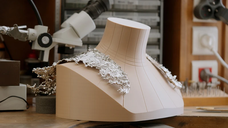 回溯近年的創作,Choisne 應該會告訴你,要被珍視的是陽光(2021年啟發自光線和顏色、彩虹和極光的 Holographique 系列)、是空氣(2020年 Contemplation 系列運用氣凝膠 Aerogel,NASA太空總署用來採集太空星塵的特殊物質打造多件作品)、是花(2018年的數位掃描與永生花技術),還有水,這些美好卻又稍縱即逝的自然事物。