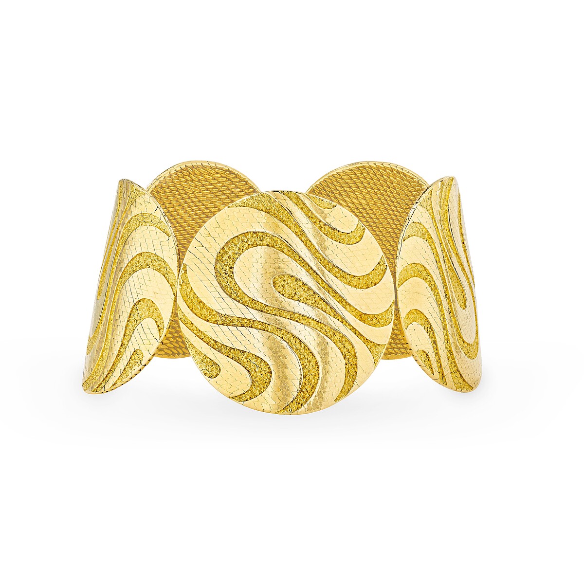 《歐普藝術御門》(OP ART MIKADO)手鐲 1970 年 黃K金 18 × 3.5 × 5 公分 Van Cleef & Arpels Collection