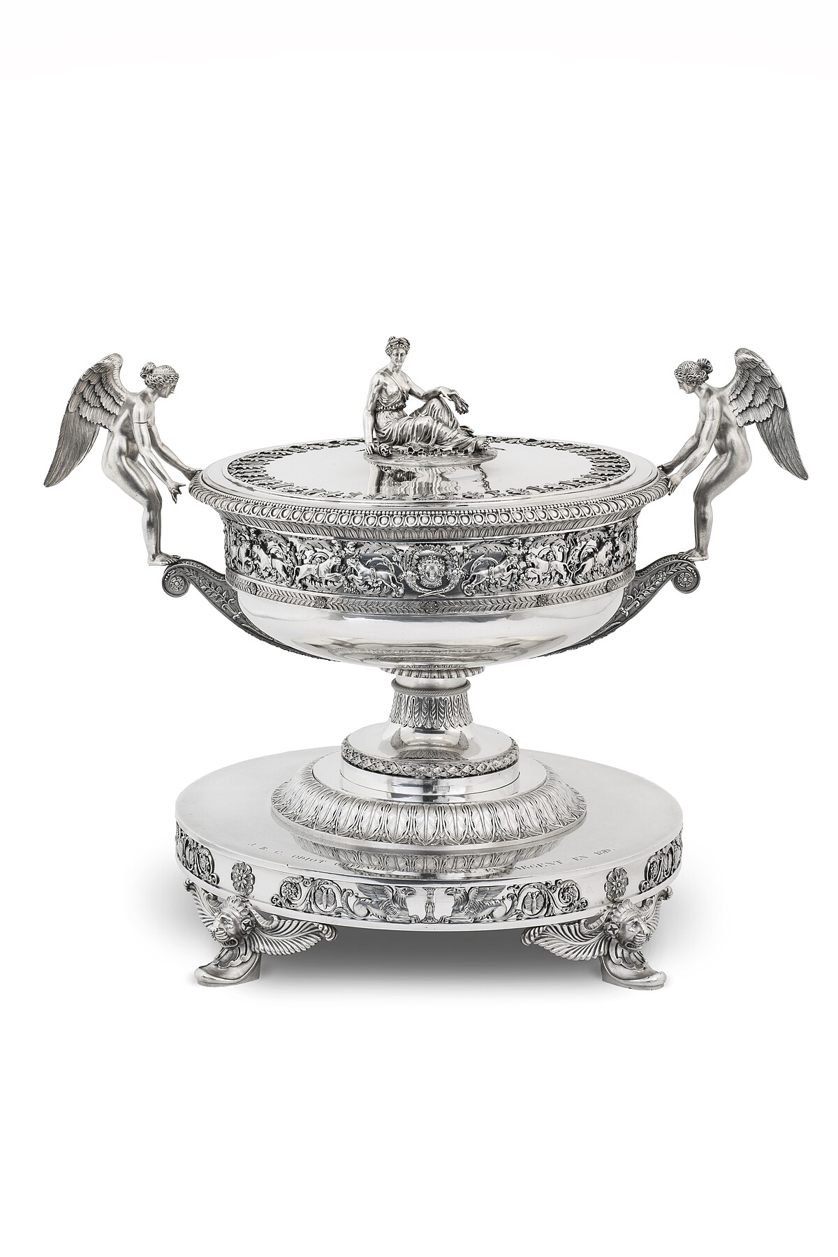 《 蓋 碗 》( T U R E E N ) Jean-Baptiste Odiot, 法國,1819 年 昆庭銀器世家(Christofle),約1907 至1908 年 鍍銀黃銅 44 × 33 公分 巴黎裝飾藝術博物館