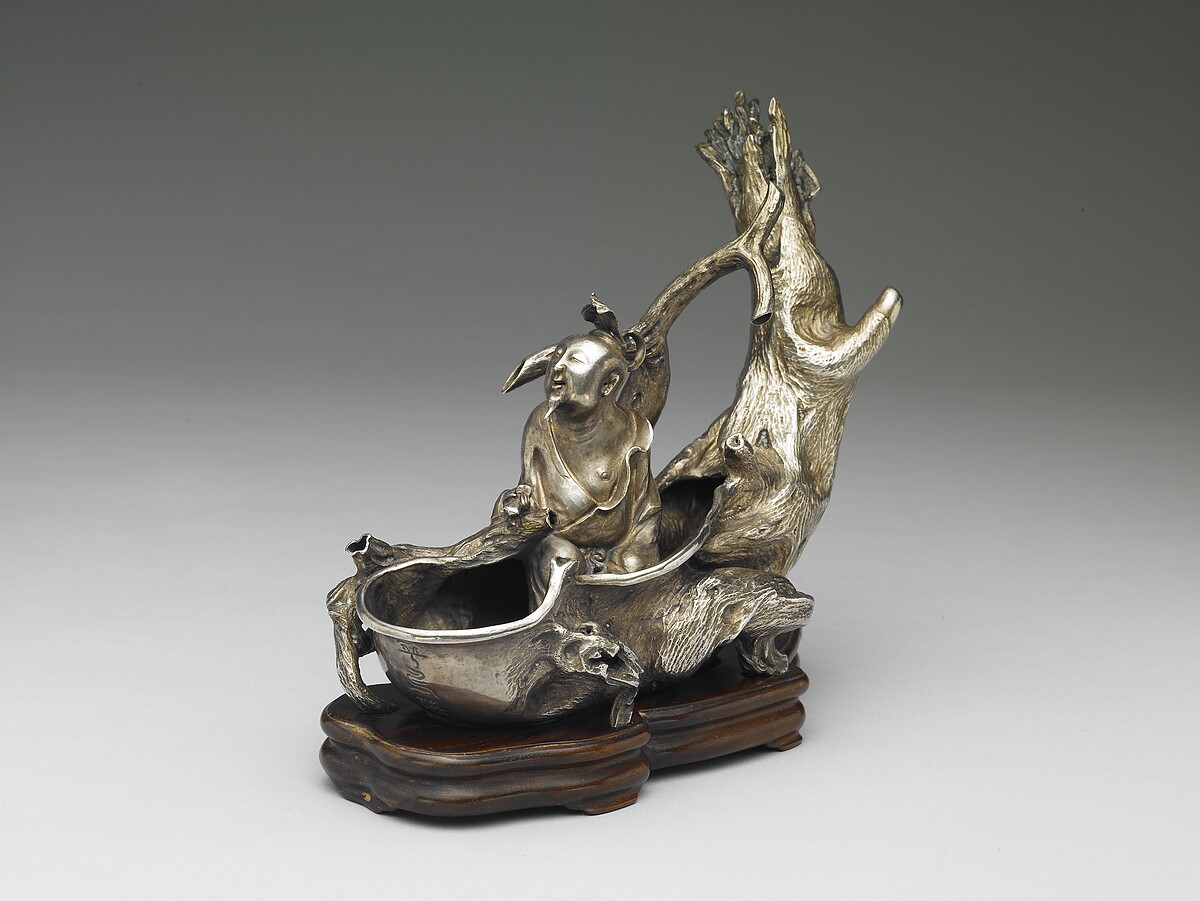朱碧山款「張騫乘槎」銀槎 元至明 (1271–1644 年) 銀 23.6 × 11.3 × 14.8 公分 國立故宮博物院