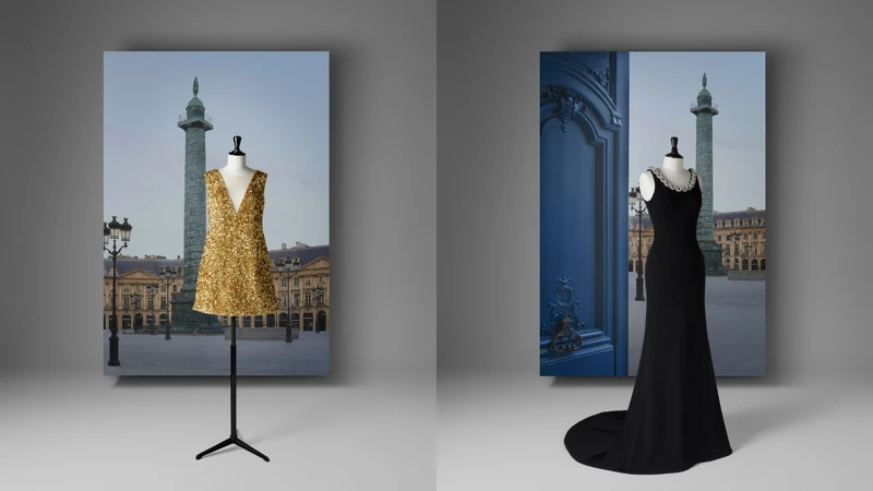 跟隨2024珍稀皮革展,本次亦有多件特別定製高級晚禮服首度來台,包括金色V領刺繡短洋裝,使用了2,900顆造鑽石和69,000個亮片、耗時400個小時製作而成;黑色無袖刺繡禮服中的頸部的銀色刺繡,則耗費73小時打造。