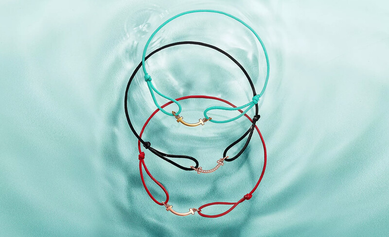 Tiffany T Smile 公益絲繩手鍊系列以18K黃金設計呈現,並採用回收廢棄塑料瓶製成的環保纖維繩(REPREVE® Our Ocean™)。更棒的是,每售出一條手鍊,我們將捐出100美元,用於海洋保護項目。