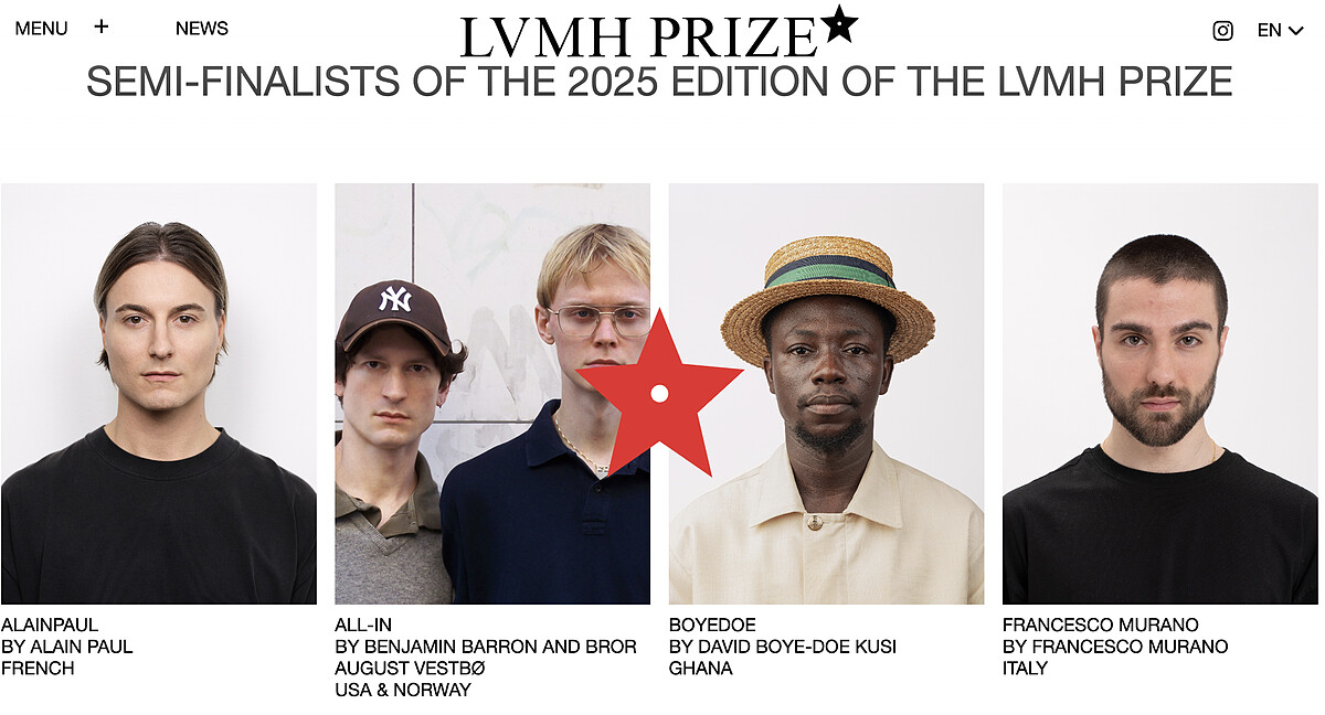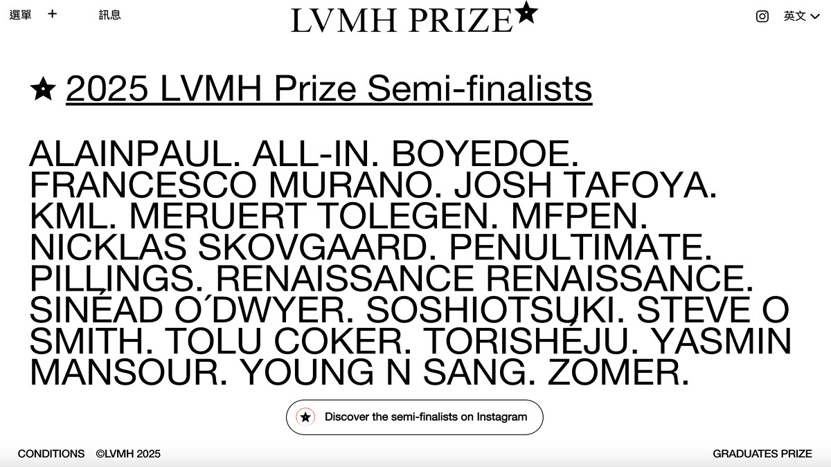 今年 LVMH Prize 再次吸引來自全球的年輕設計師競逐,以下為 2025 年的入圍名單: