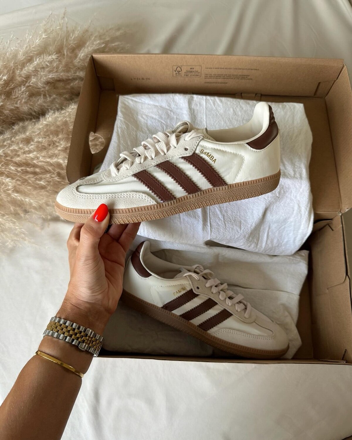 另外,只要談到德訓鞋,許多人會首先想到 adidas Samba,它雖然發跡的年代更早(1950 年),但它起初的造型並非現在所看到的模樣,而是為了在雪地運動的足球員所設計的中高筒鞋款。直到 1962 年,SAMBA 轉變成低筒鞋才成為熱門的穿搭單品。
