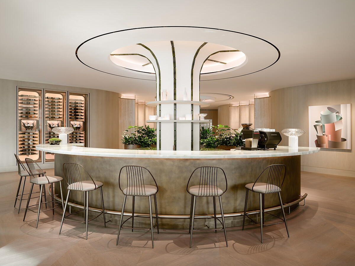 而今,AP House 新居遷成,選在由 Zaha HadidArchitects( ZHA )事務所打造的「The Henderson」,這棟建築設計汲取香港市花一洋紫荊的待放美態,前衛而引人注目的第一印象即完美體現品牌DNA,而這樣的靈感概念,也以圓角重現花蕾曲線的優雅線索,串起佔地共逾600平方米的各個主題空間。AP House 「The Henderson」是繼阿姆斯特丹、香港、倫敦、洛杉磯、米蘭、慕尼黑、紐約、首爾、東京和蘇黎世等地,全球第22間,同時,香港還另有一間在九龍K11 Musea。