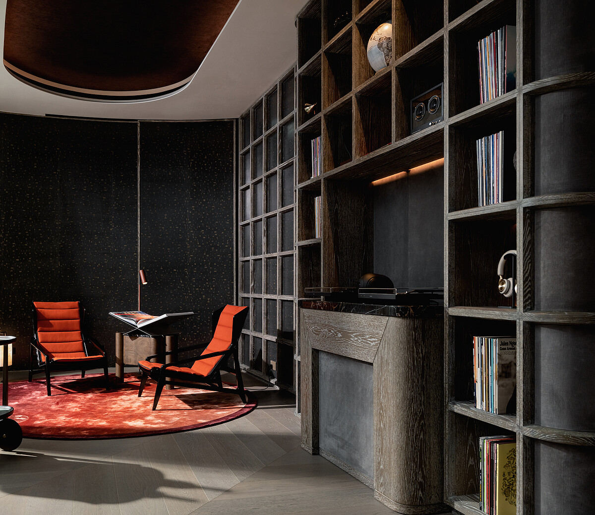 三月一天的午後,莫文蔚、CL 和劉青雲,三人驚喜同台,只為愛彼之家揭幕。走入室內,首先迎接眾人的是,在波浪形的岩牆前登場的圓形鐘錶展廊;其後是位居 AP House 中央位置的「雅竹吧檯」,向上攀升至天花的綠意裝飾,在自然光線下更顯鬱蔥;視線再從左前方舒展開來,開闊落地玻璃讓都市街景和海港景色一覽無遺。吧檯右後的一道隱門是CL最愛的隱藏酒吧入口,「這裏有很棒的唱片音樂收藏!」另外,點綴粼粼玻璃吊燈的用餐區、重現品牌發源地瑞士家鄉汝拉山谷 Le Brassus 的大自然主題包廂,無不展現品牌與音樂、當代藝術、科技和美食文化的密切連結。