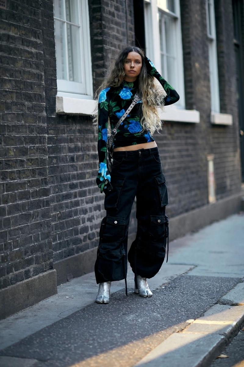許多工裝褲會在褲腳加入束口設計,這不僅有助於修飾腿部比例,也讓搭配鞋款更具變化性,從休閒鞋、靴子到高跟鞋都能完美銜接。材質方面則多選用重磅斜紋布、帆布或厚棉,這些布料不僅耐穿,還能撐起整體褲型輪廓,讓穿著更有份量感。