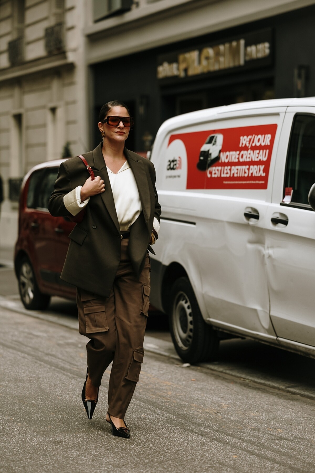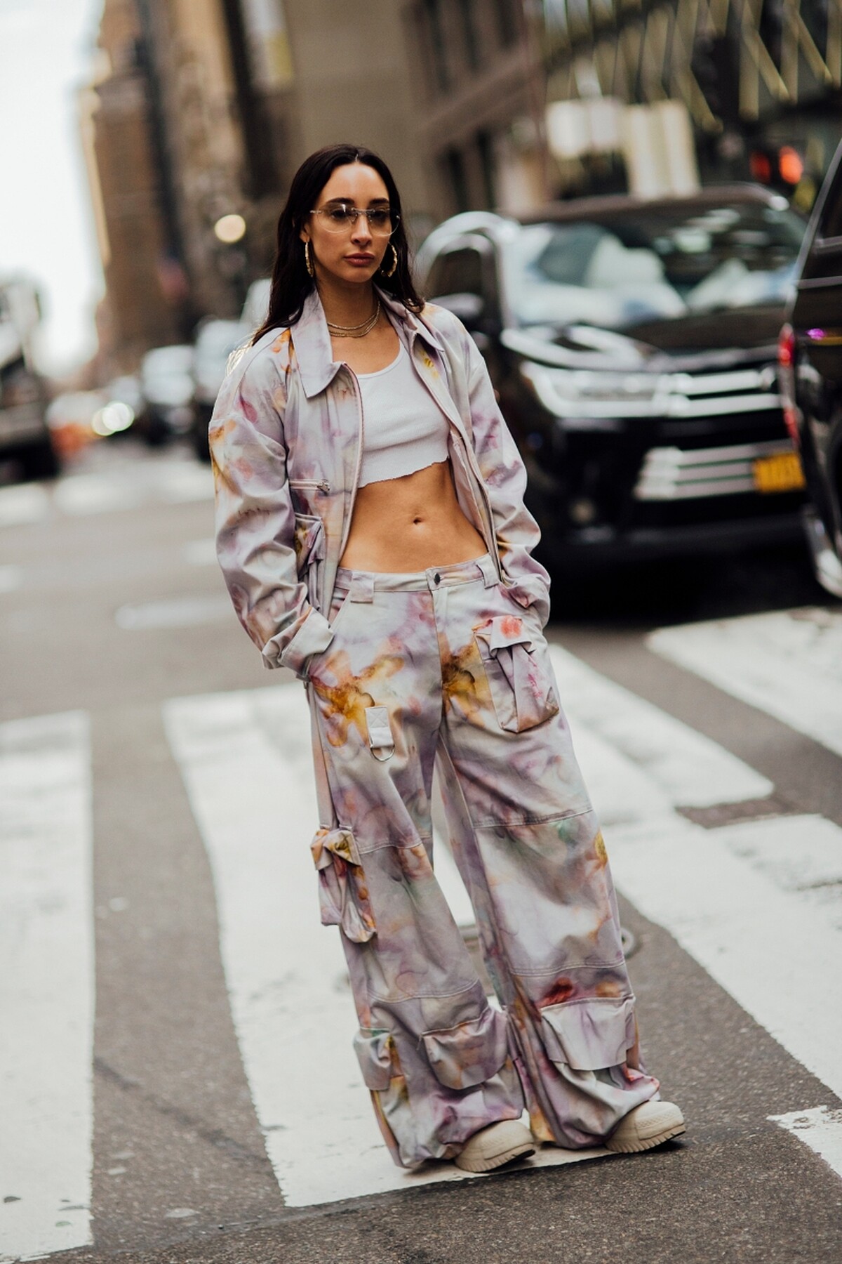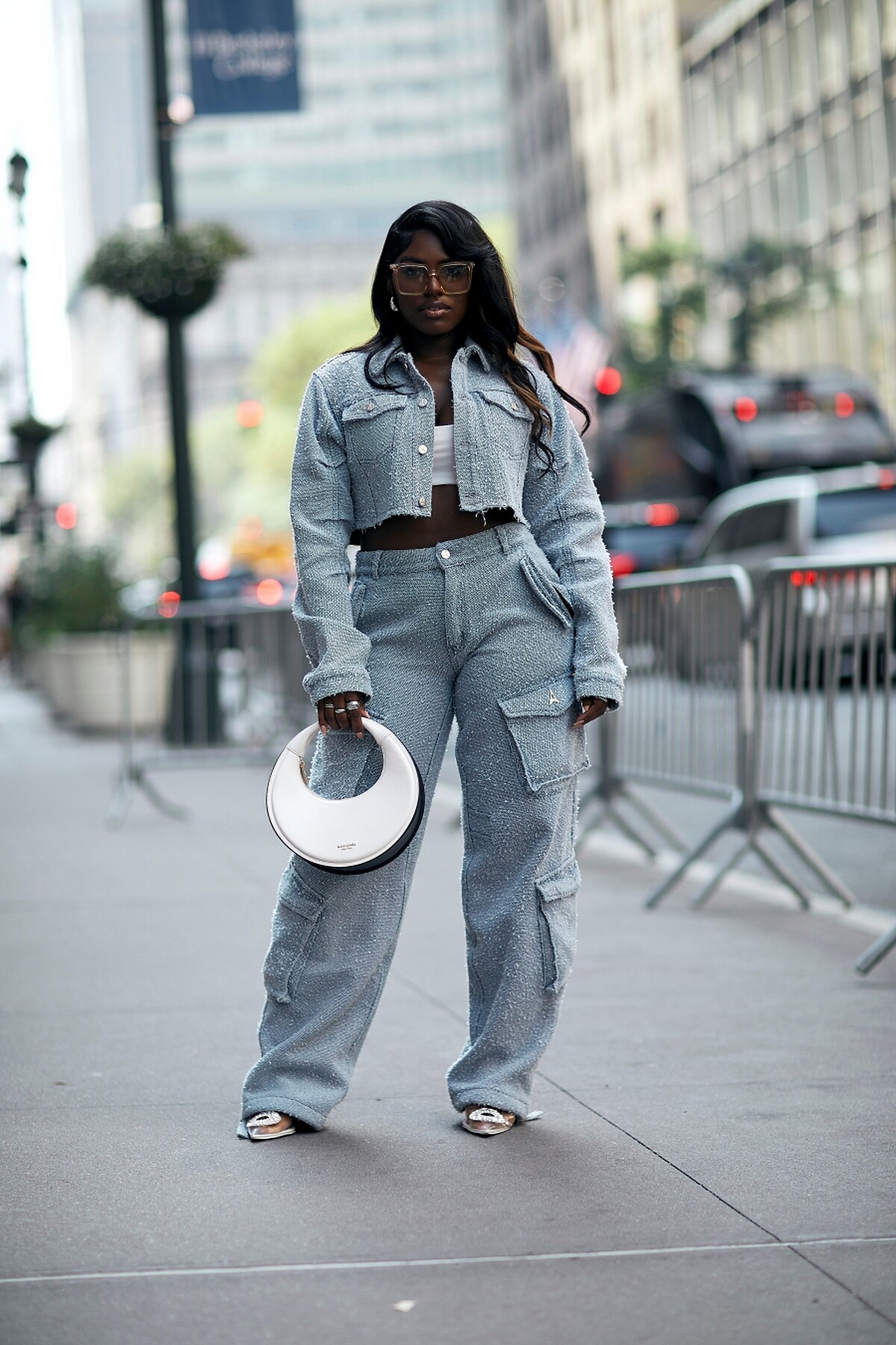 許多工裝褲會在褲腳加入束口設計,這不僅有助於修飾腿部比例,也讓搭配鞋款更具變化性,從休閒鞋、靴子到高跟鞋都能完美銜接。材質方面則多選用重磅斜紋布、帆布或厚棉,這些布料不僅耐穿,還能撐起整體褲型輪廓,讓穿著更有份量感。