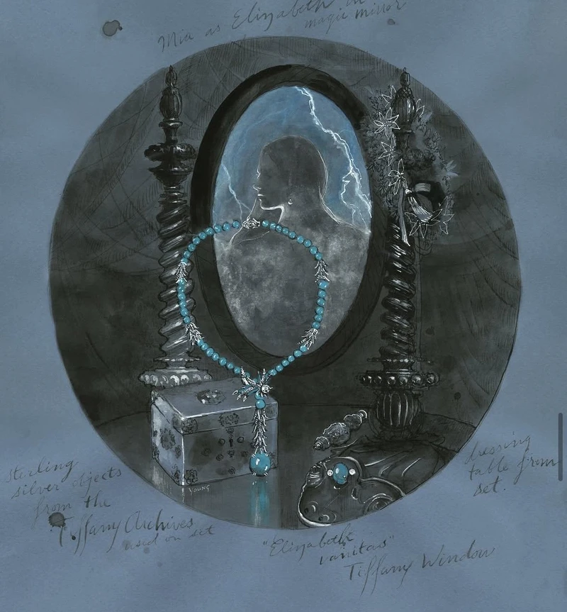 由電影和舞台製作服裝設計師Kate Hawley的構思,服裝與珠寶建立了微妙的親密對話:面料靈感源自於自然形態,憂鬱的輪廓與寶石的璀璨閃光交互輝映。「珠寶本身存在著創意貢獻,其重要性不亞於化妝或佈景。」每個細節都至關重要:專門為這部電影創作的珠寶,強化放大了人類與不朽、短暫與永恆之間的戲劇張力。